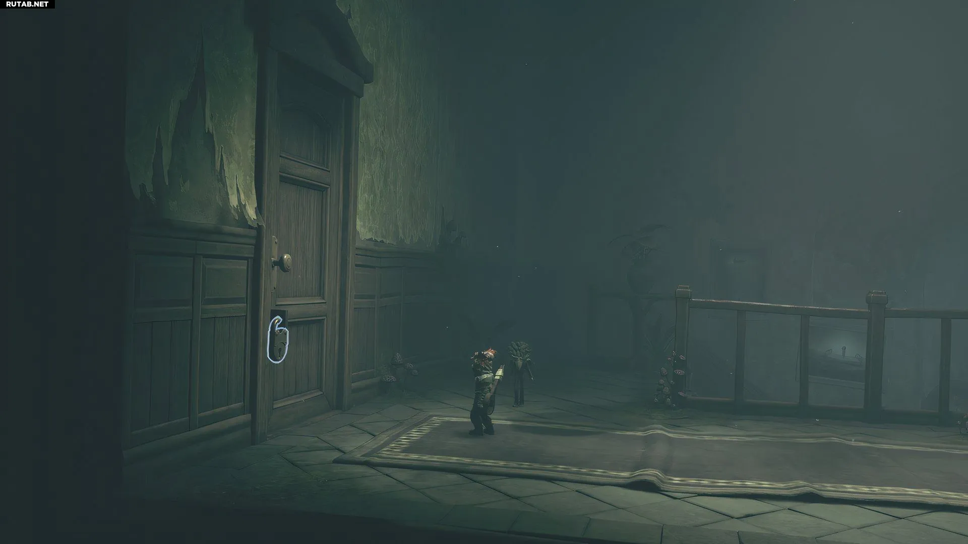 Пройдите через левую дверь, чтобы попасть в небольшой кабинет, где на полу сидит кукла. Затем вернитесь в коридор, сорвите доски с другой двери и продолжите путь.