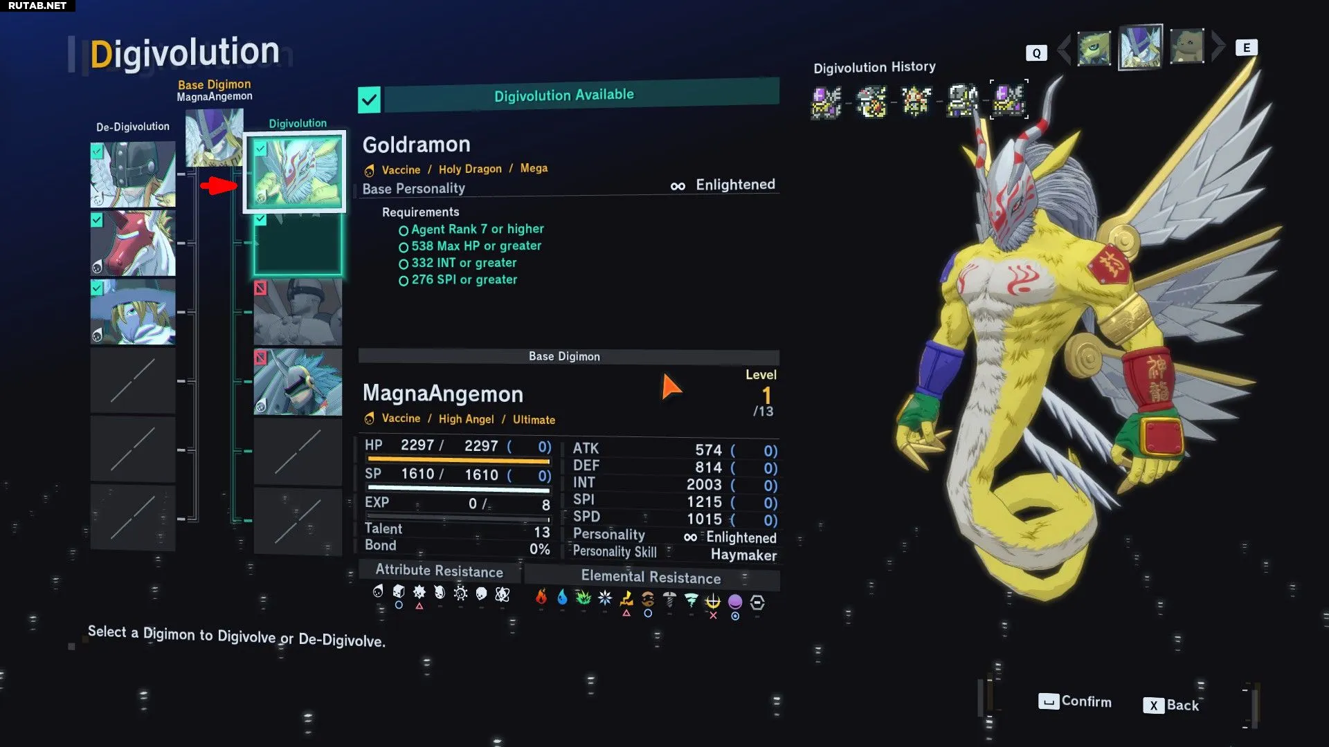 - Провести дигиволюцию MagnaAngemon в Goldramon.