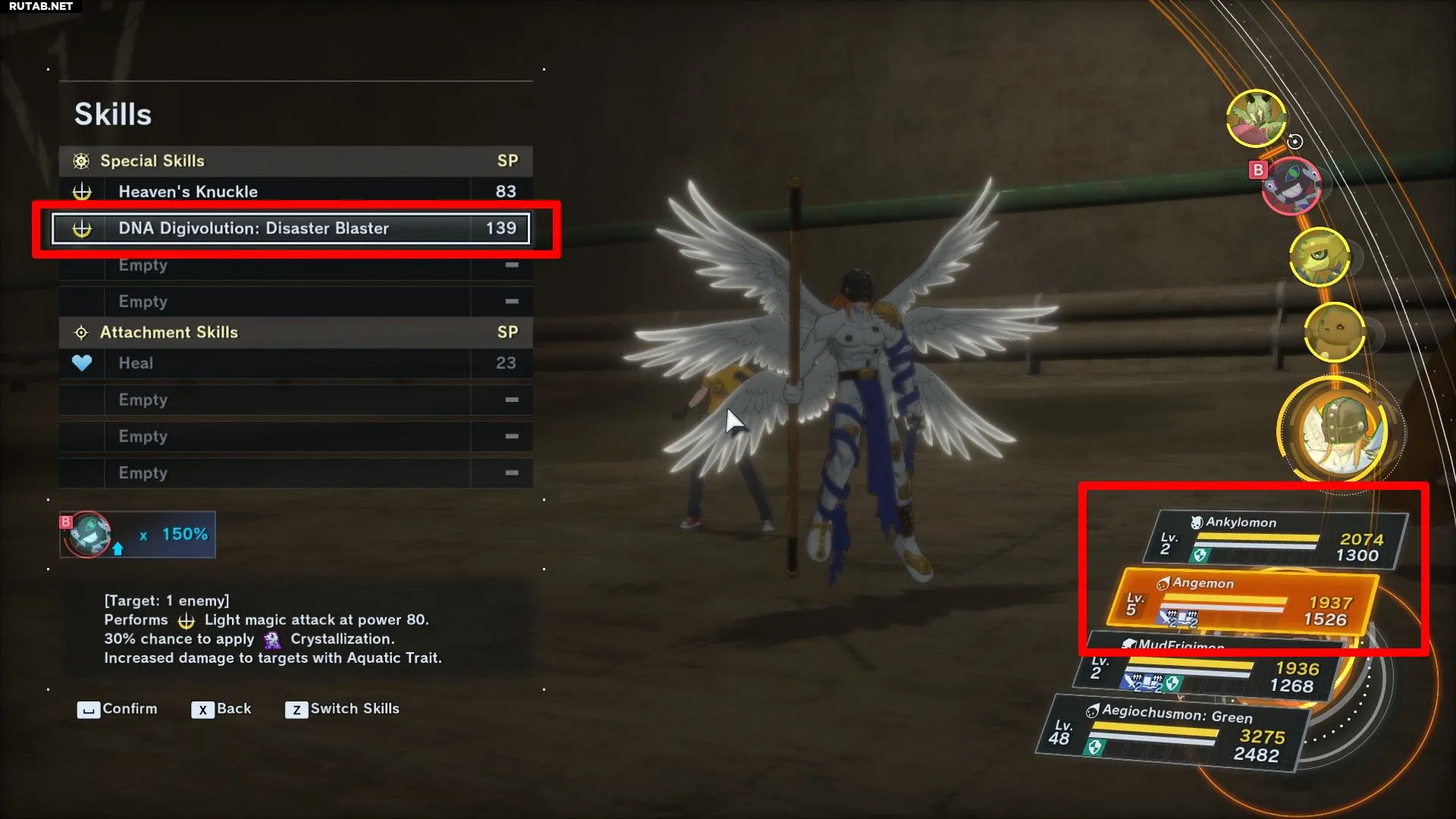 - Поместите Ankylomon и Angemon в активный отряд и начните бой.