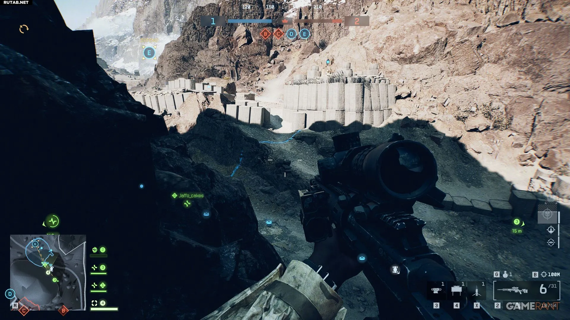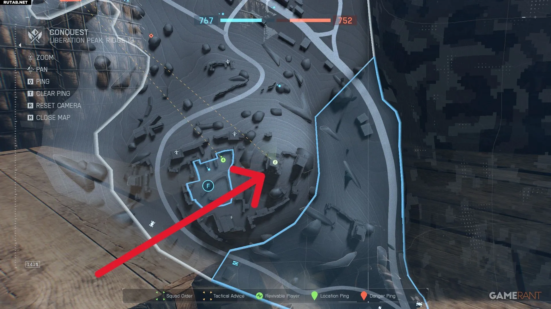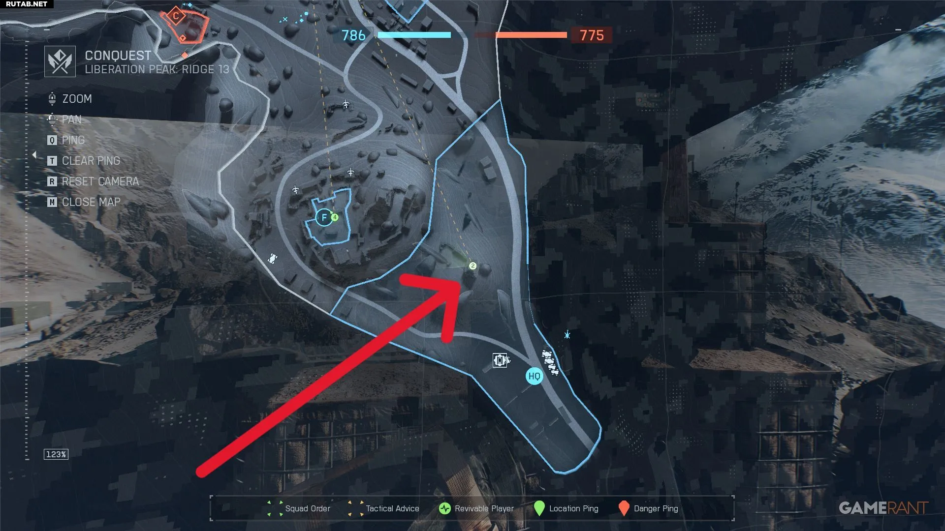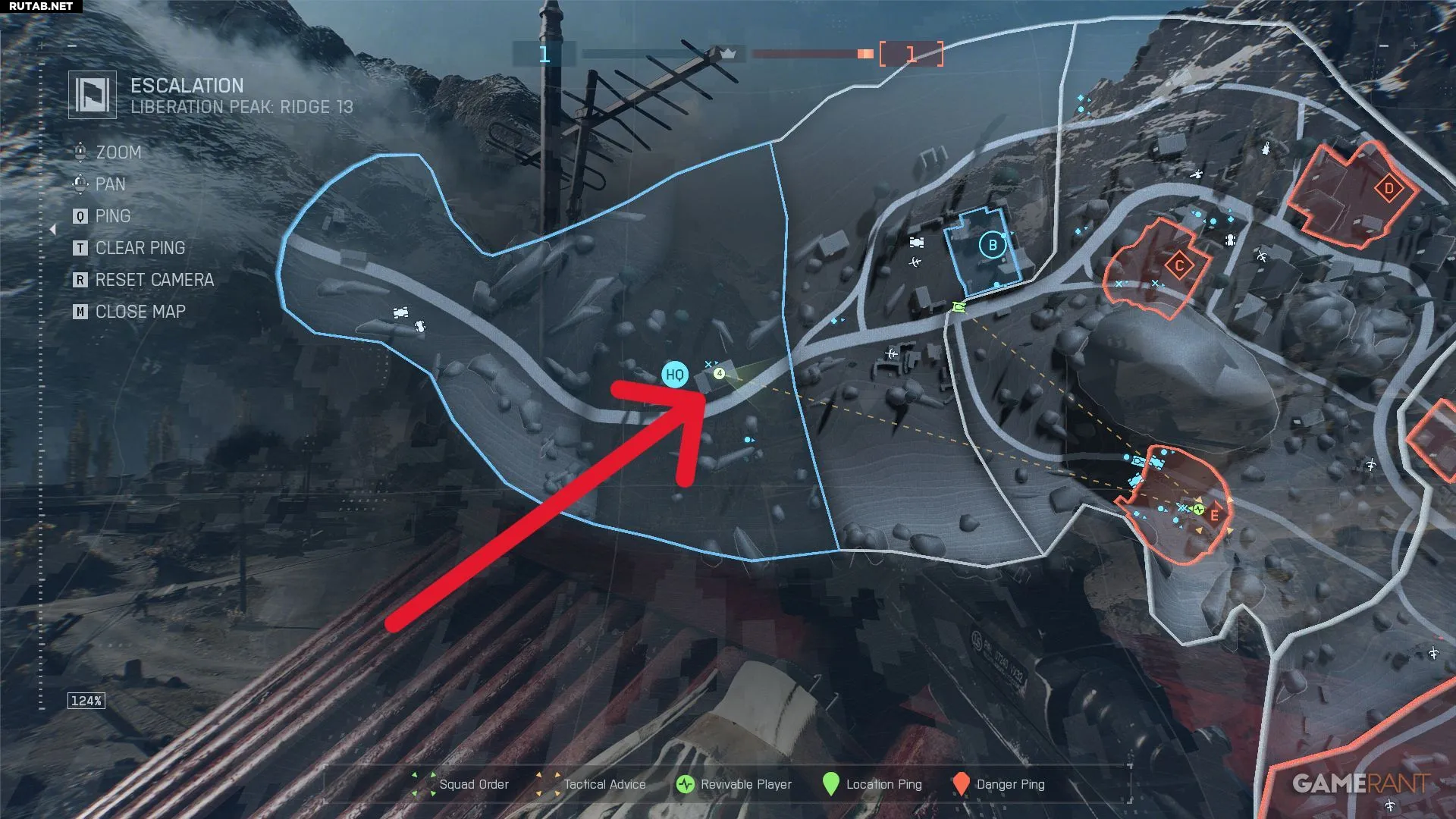 Если дела у команды НАТО идут не очень хорошо и их оттеснили, есть хорошая позиция прямо за пределами зоны базы. Используйте указатель-стрелку и переберитесь через скалы на небольшой выступ.