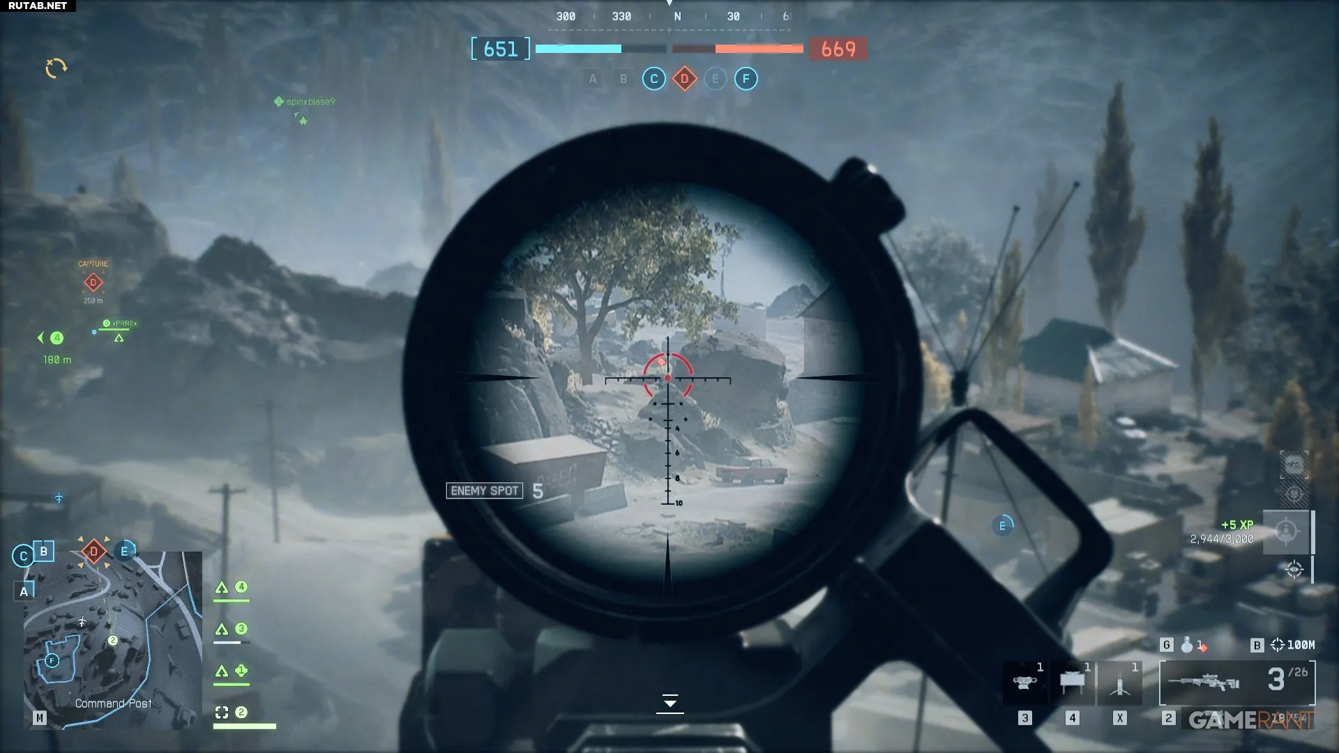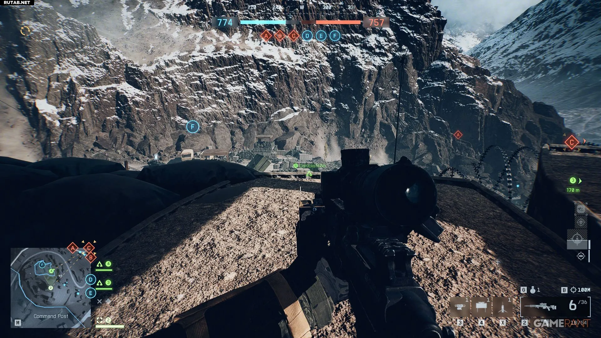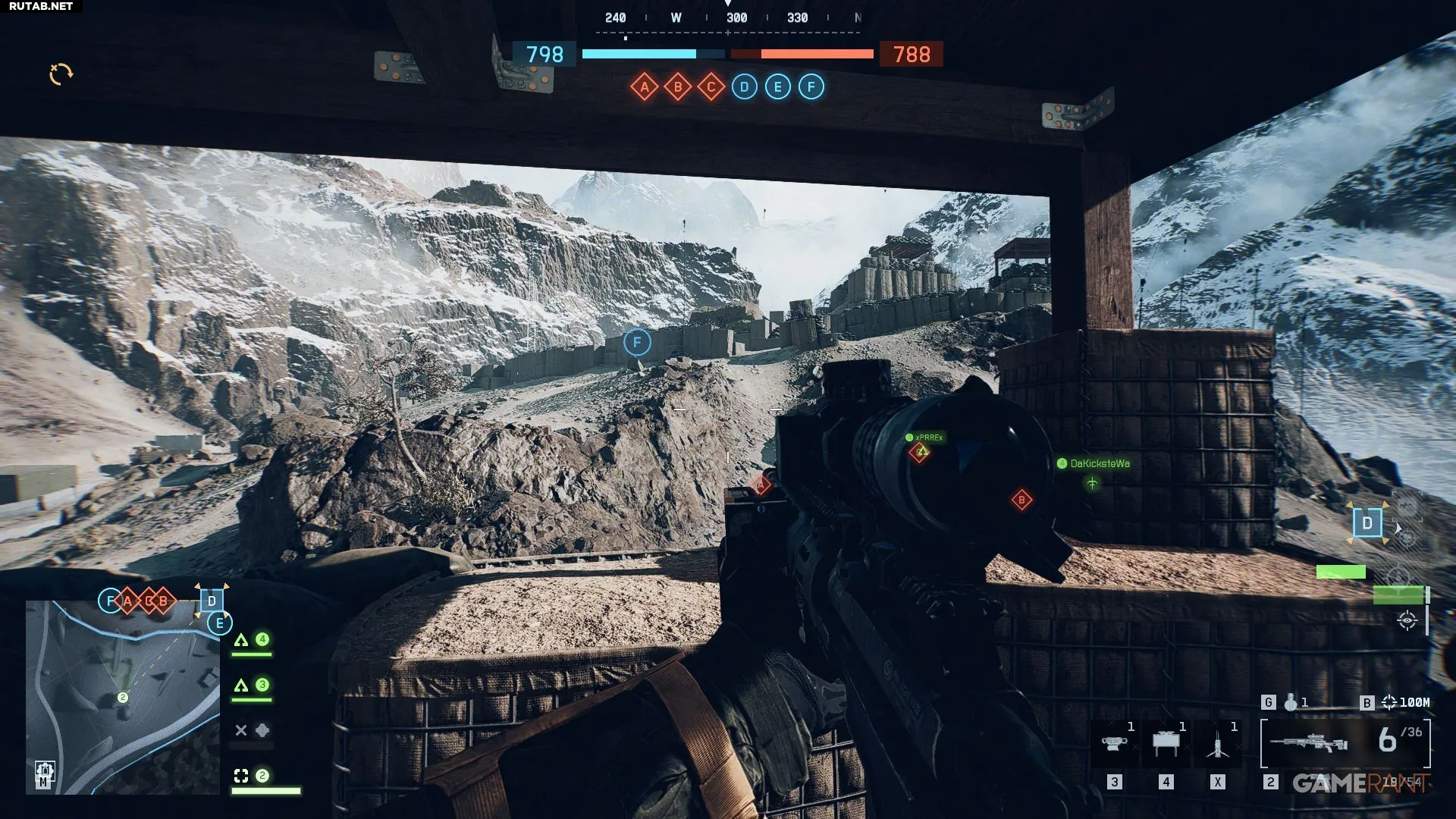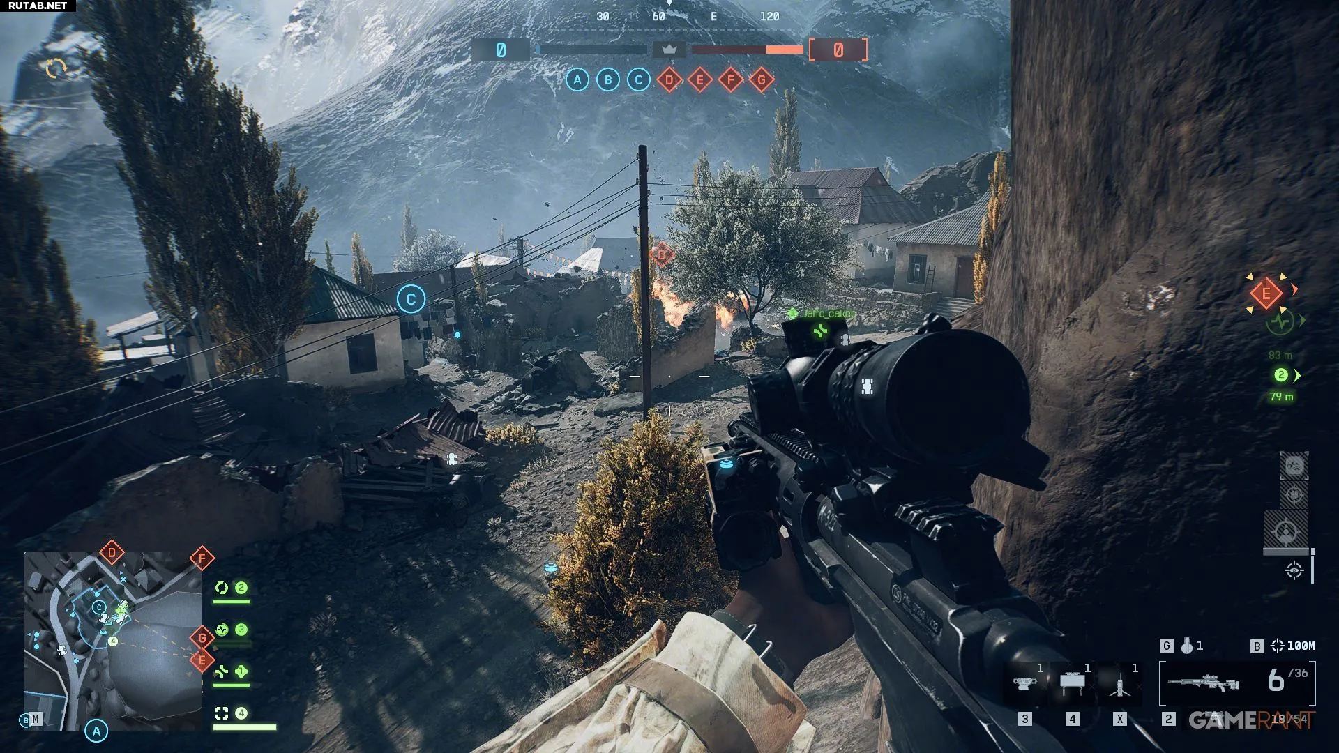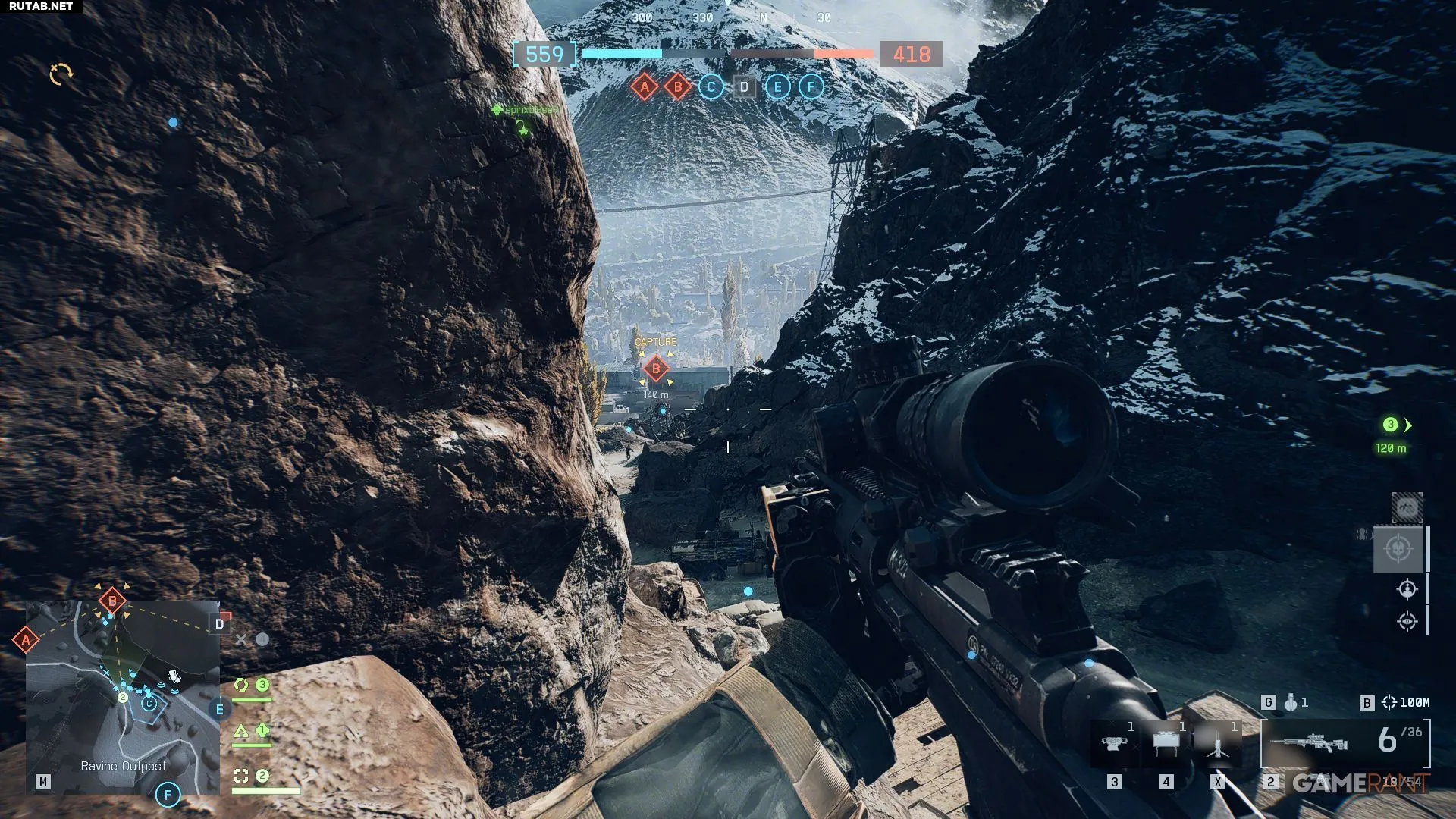 Снайперское гнездо к югу от цели F, возможно, является лучшей позицией на карте для снайперов. Оно позволяет видеть части цели F, всю цель E, подходы к цели D, крупную скальную формацию в центре и часть ущелья, где расположена цель C.