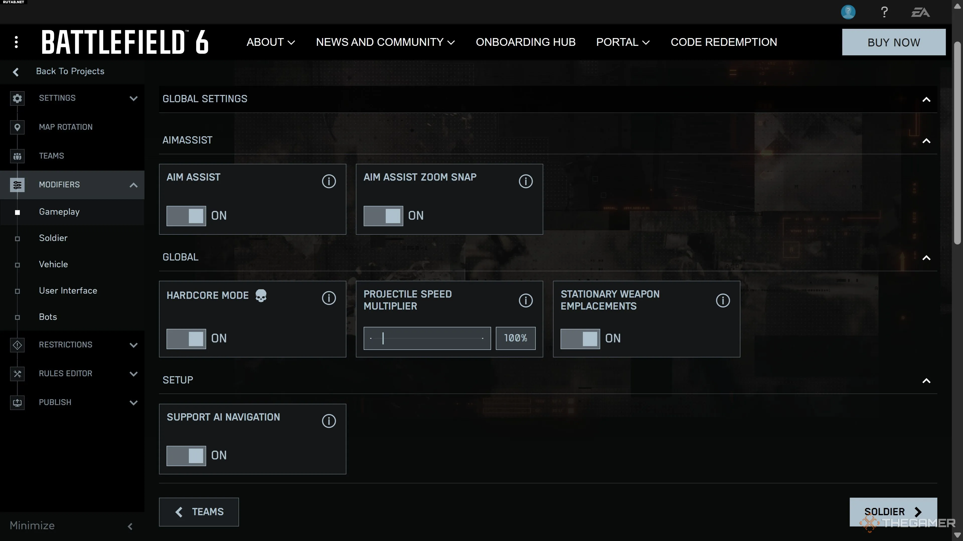- Геймплей: Эти модификаторы позволяют включать и отключать помощь при прицеливании, режим Хардкор, скорость снарядов и многое другое, чтобы игра ощущалась именно так, как вам хочется.