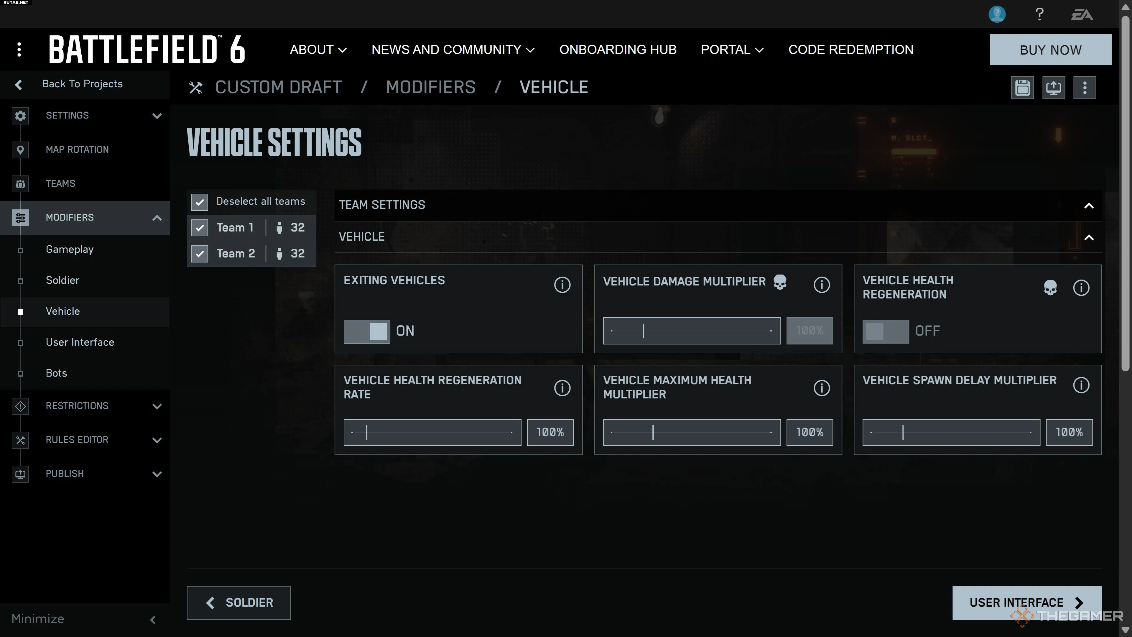 - Техника: Подобно модификаторам для солдата, настройки для техники позволяют регулировать её урон, возможность покидать её, а также отключать автоматическое восстановление через определённое время. Для поклонников Хардкора эти опции станут настоящей находкой.