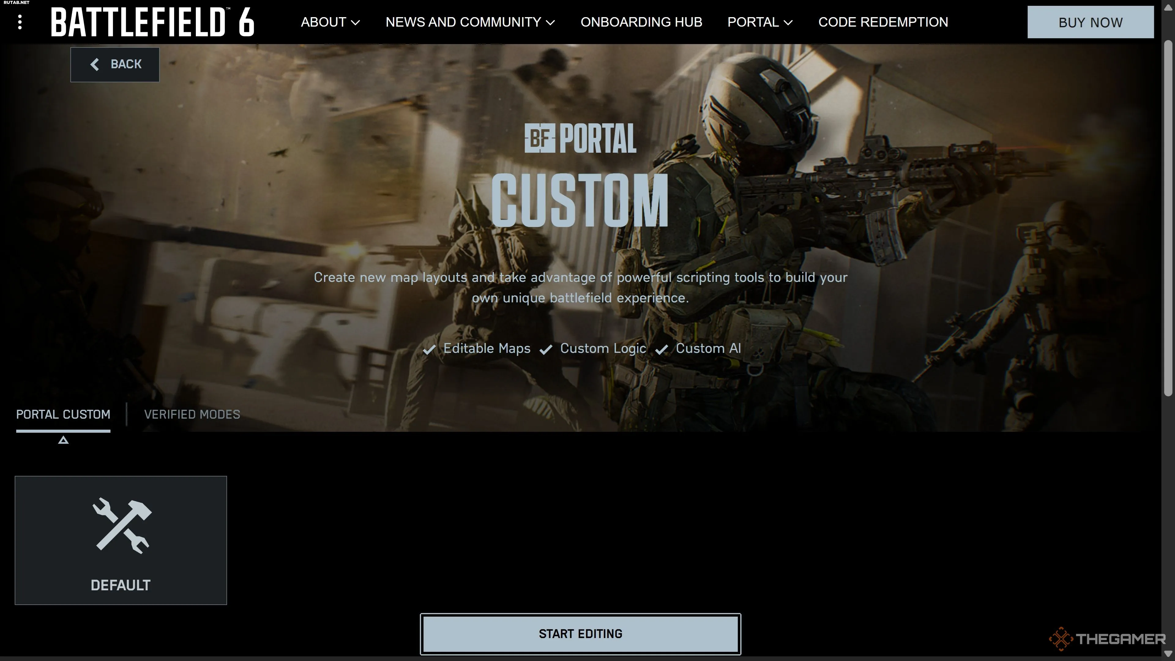 " alt=""> " alt="">При создании или изменении режимов для Battlefield 6 через Портал у вас будет два варианта. Один помечен как «Custom», а другой — «Verified Modes». Хотя Custom может показаться более интересным вариантом, он потребует создания всего игрового режима с нуля, используя блоки и скрипты для формирования набора правил и целей конкретного режима — учитывайте это.