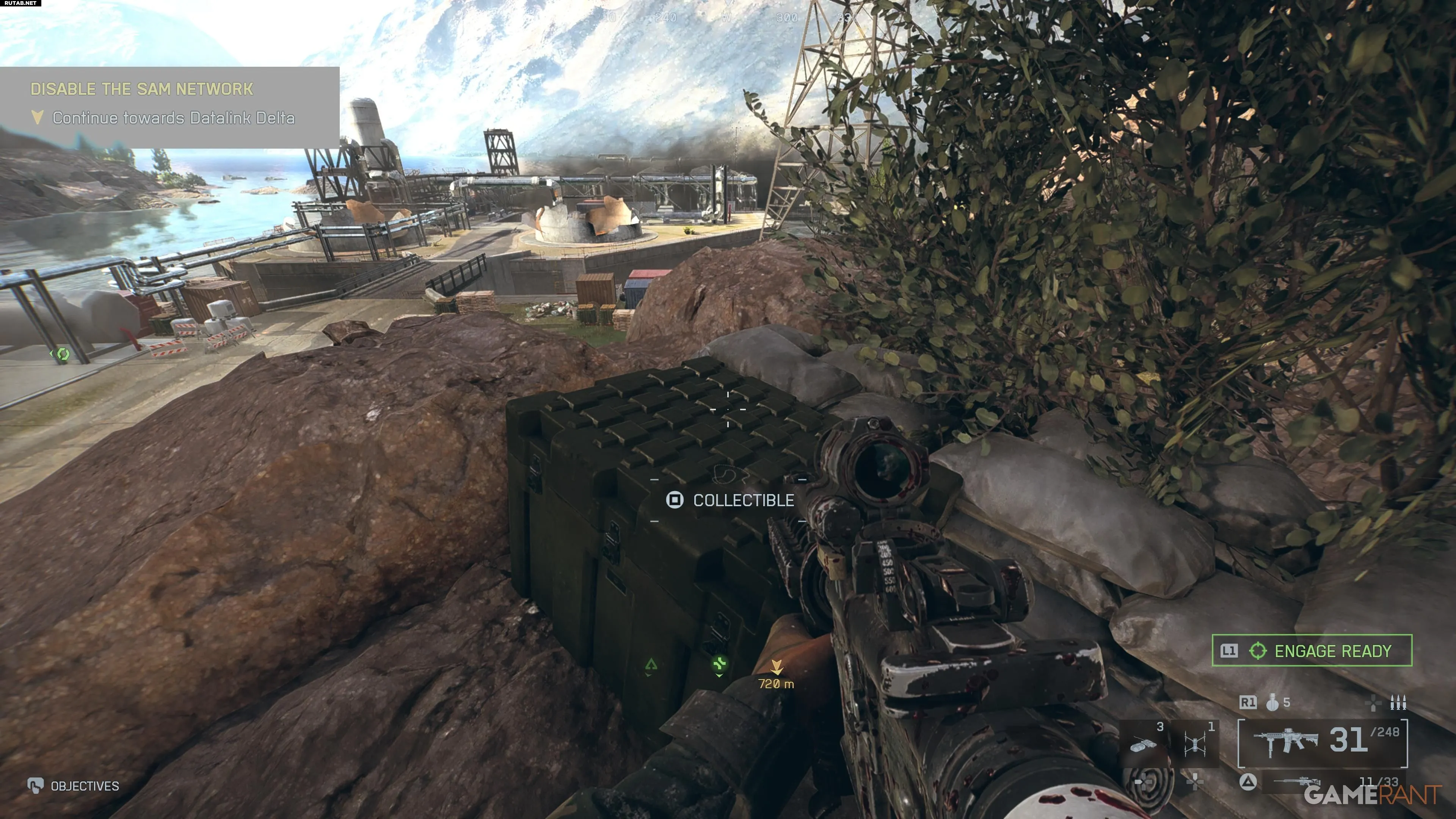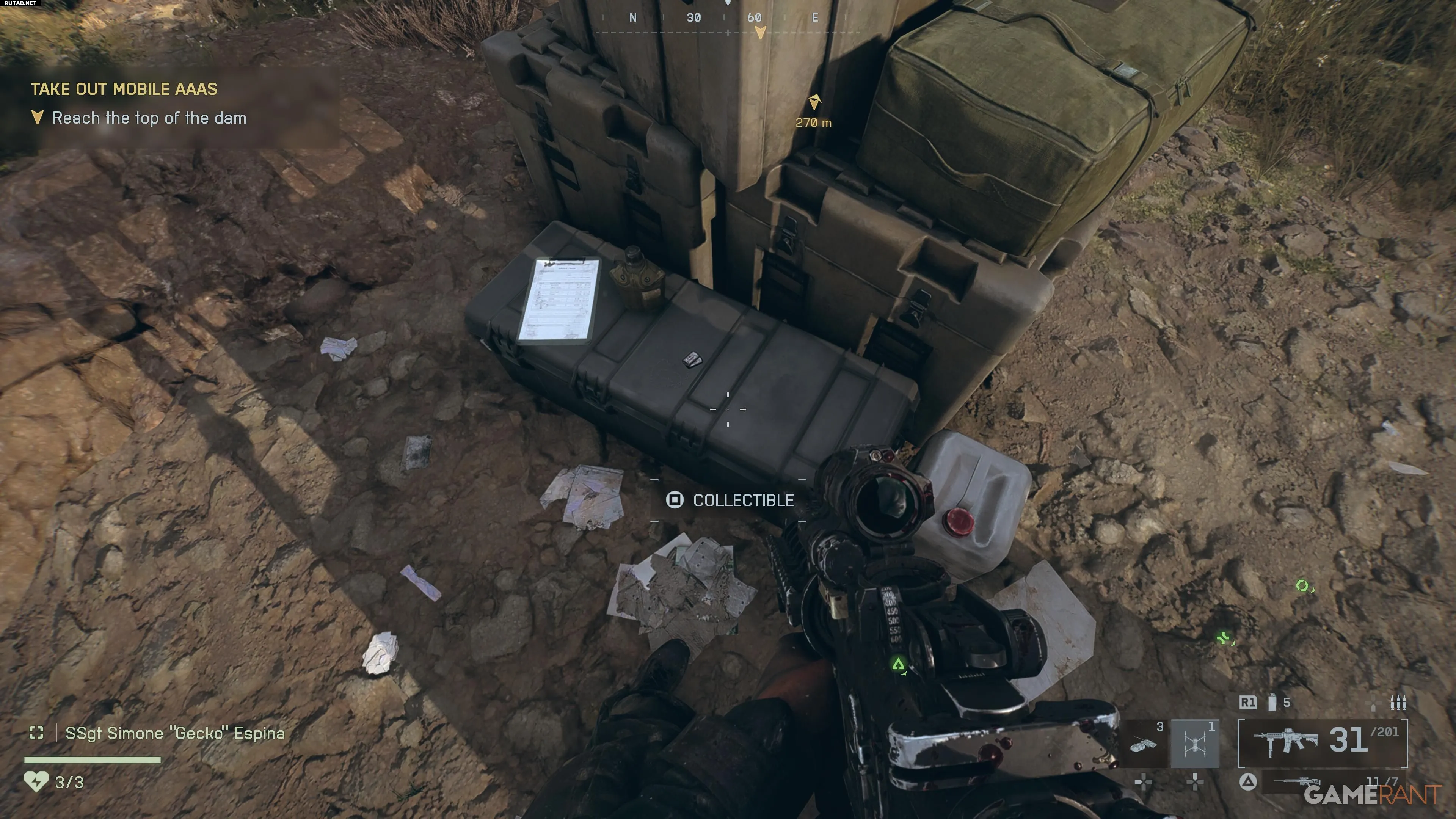 Для поиска последнего жетона пройдите миссию до дамбы и посмотрите кат-сцену. После этого вашей целью будет «Добраться до вершины дамбы (Уничтожить мобильные ЗСУ)». Следуйте за командой вверх по склону. Слева от вас будет несколько транспортных средств, за которыми на ящике лежит коллекционный предмет.