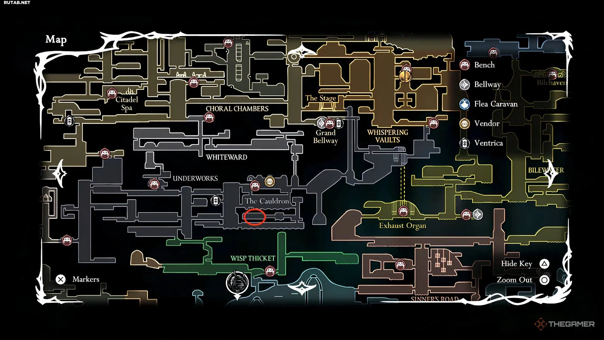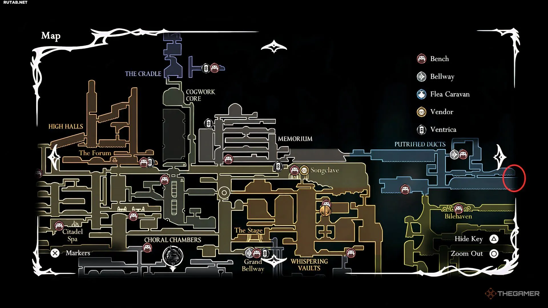 Этот Ремесленный метал находится прямо под местом, где Хорнет получает способность Цепкая нить.