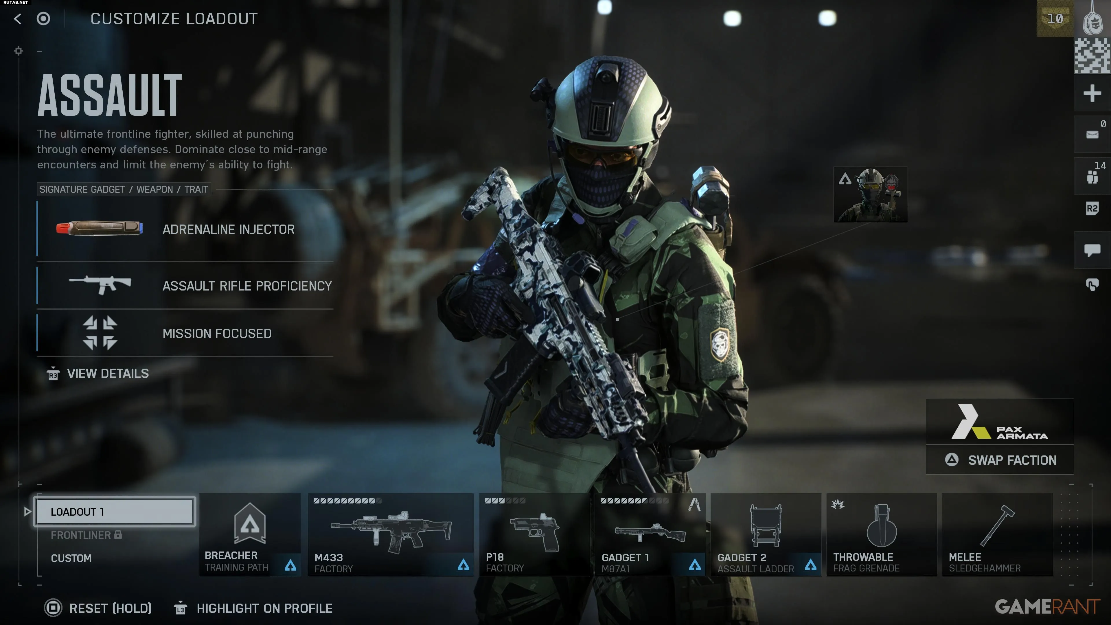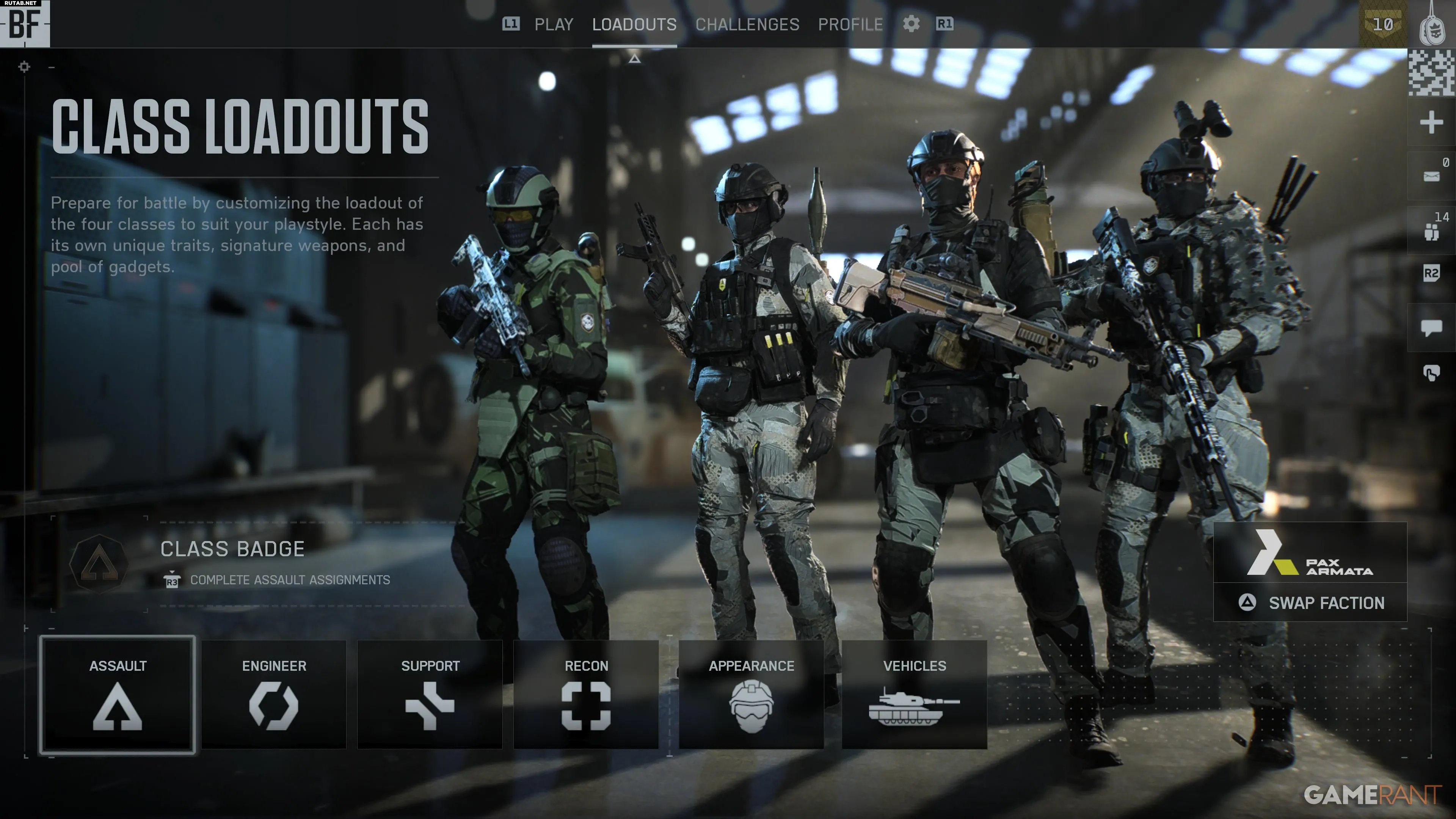 Если вы хотите выбрать другую фракцию или внешний вид, обе эти опции также находятся во вкладке Нагрузки. Здесь доступны различные операторы для выбора и установки скинов, если они разблокированы.