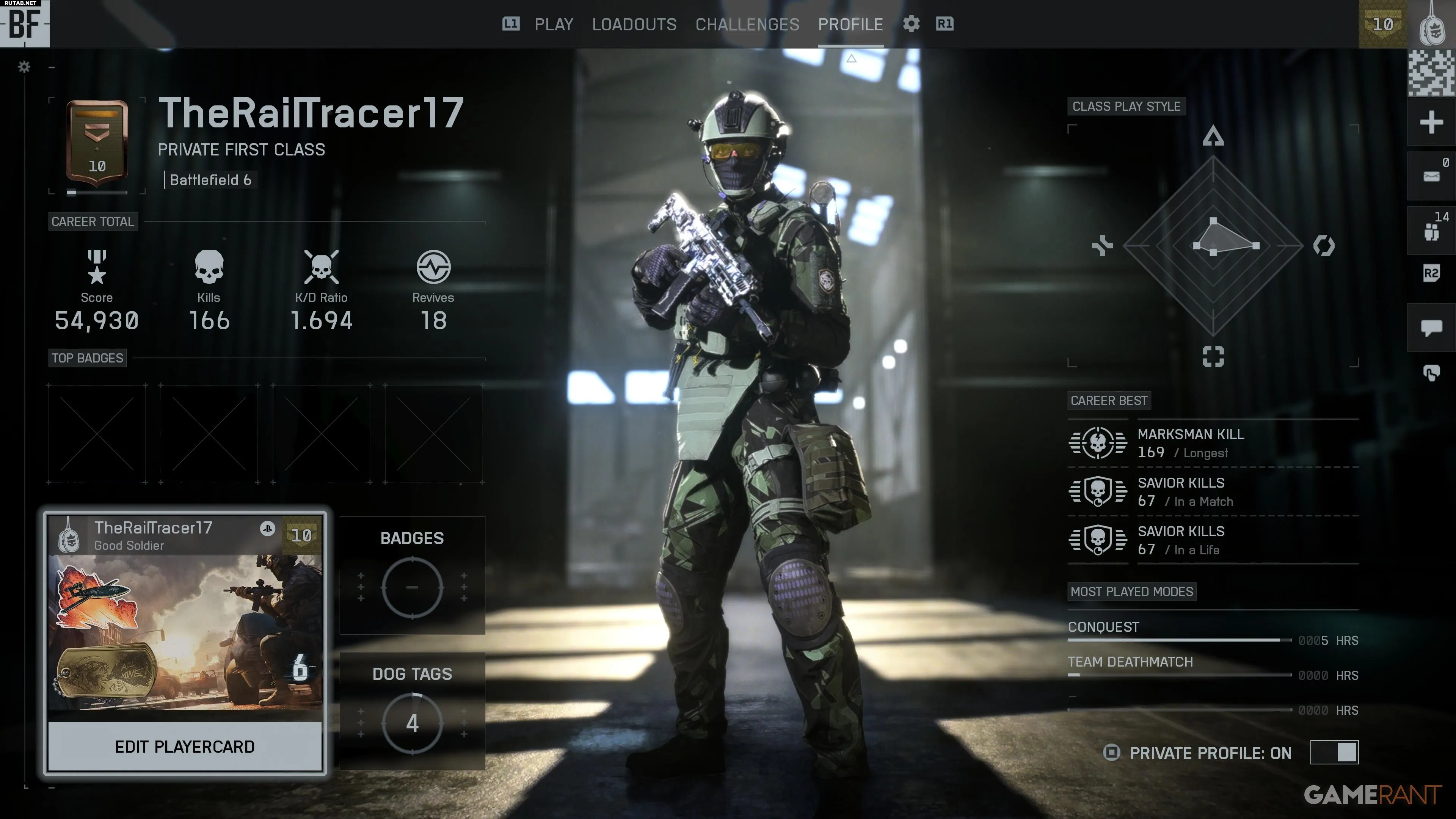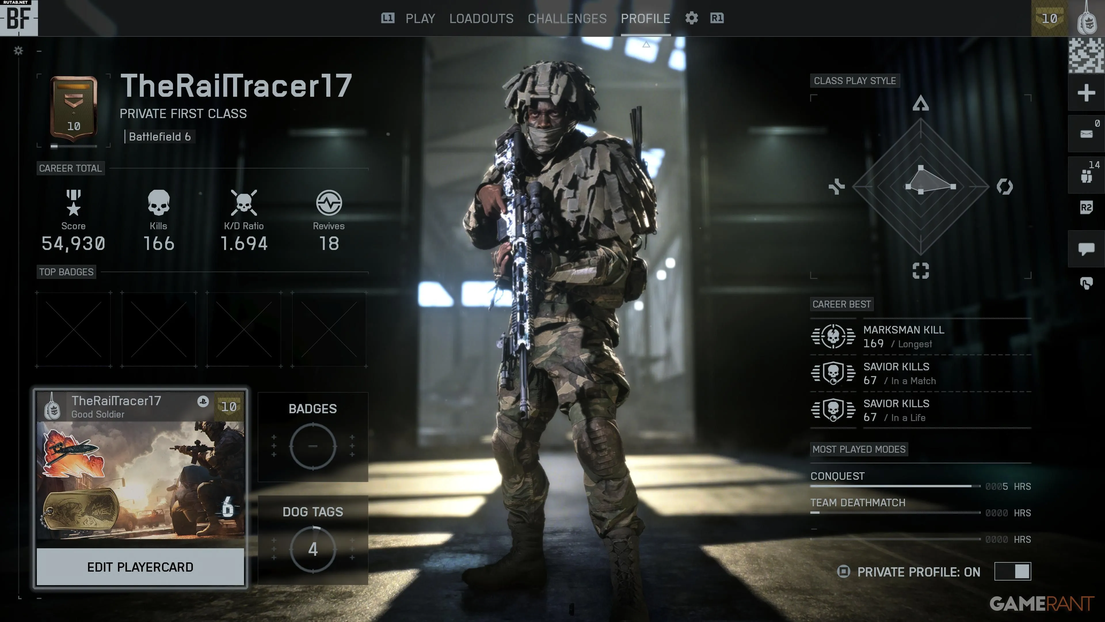 Одной из первых вещей, которую делают игроки после запуска Battlefield 6 или нескольких сетевых матчей, является переход во вкладку Профиль. Здесь отображаются очки, соотношение убийств к смертям, а также есть возможность редактировать игровую карточку. При первом посещении этого меню можно заметить, что оператор на фоне не меняется.