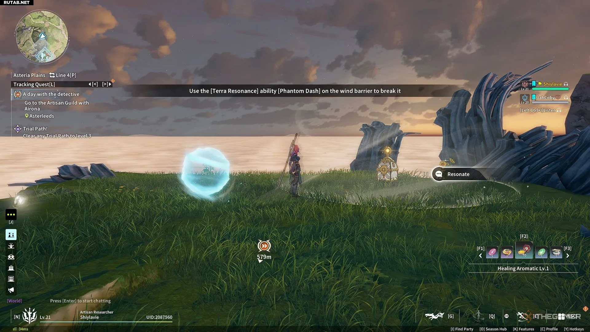 Для разблокировки этой способности необходимо достичь 17 уровня. Затем телепортируйтесь к Руинам Утеса и двигайтесь на запад к Героической Траве. Это огромное светло-голубое растение, которое дарует умение парить. Просто подойдите и взаимодействуйте с ним!