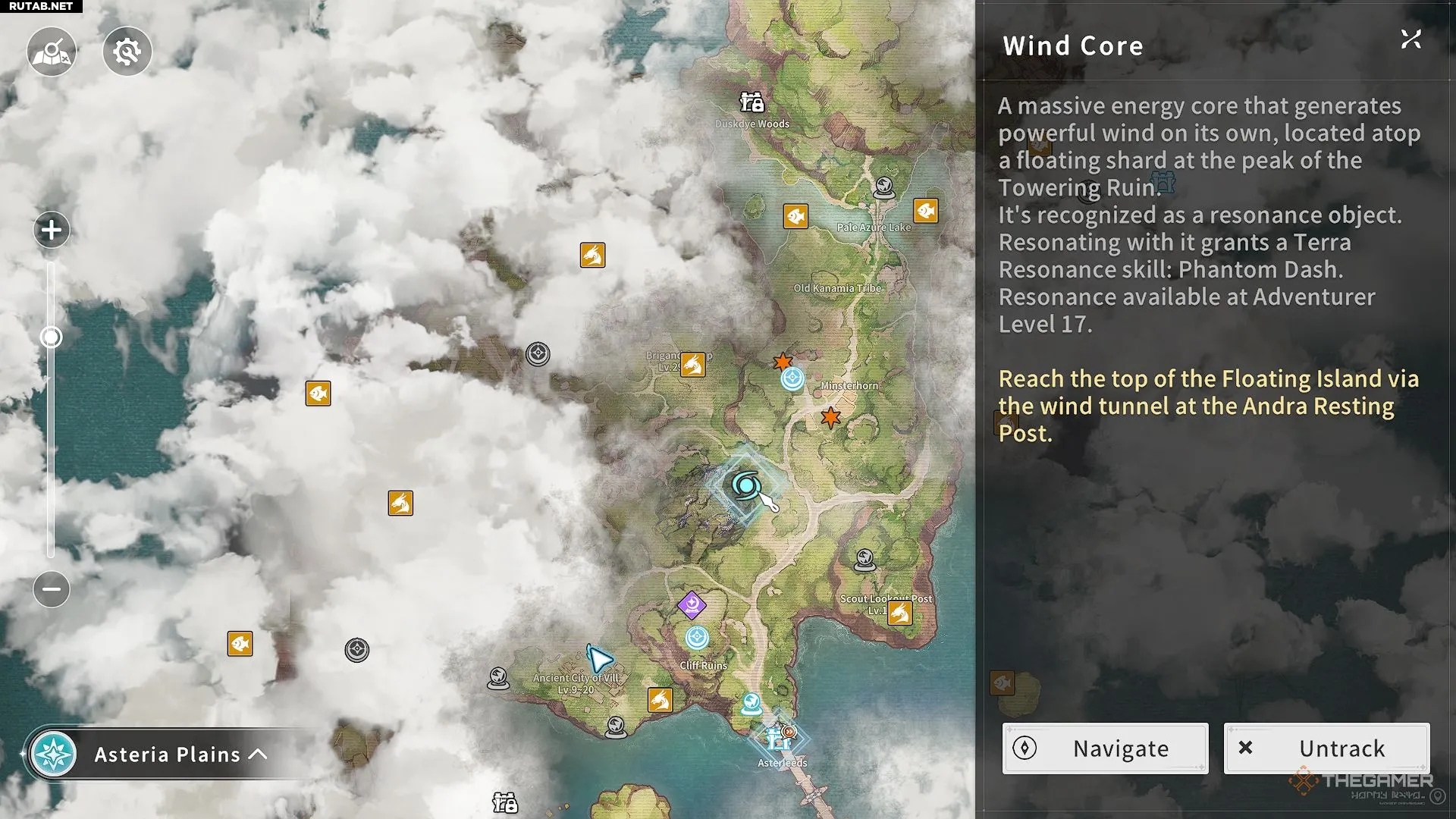 Поток ветра поднимет вас на вершину скал без дополнительных усилий. Наверху войдите в резонанс с Ветряным Ядром, чтобы разблокировать Фантомный Рывок. Экипируйте способность в меню навыков.