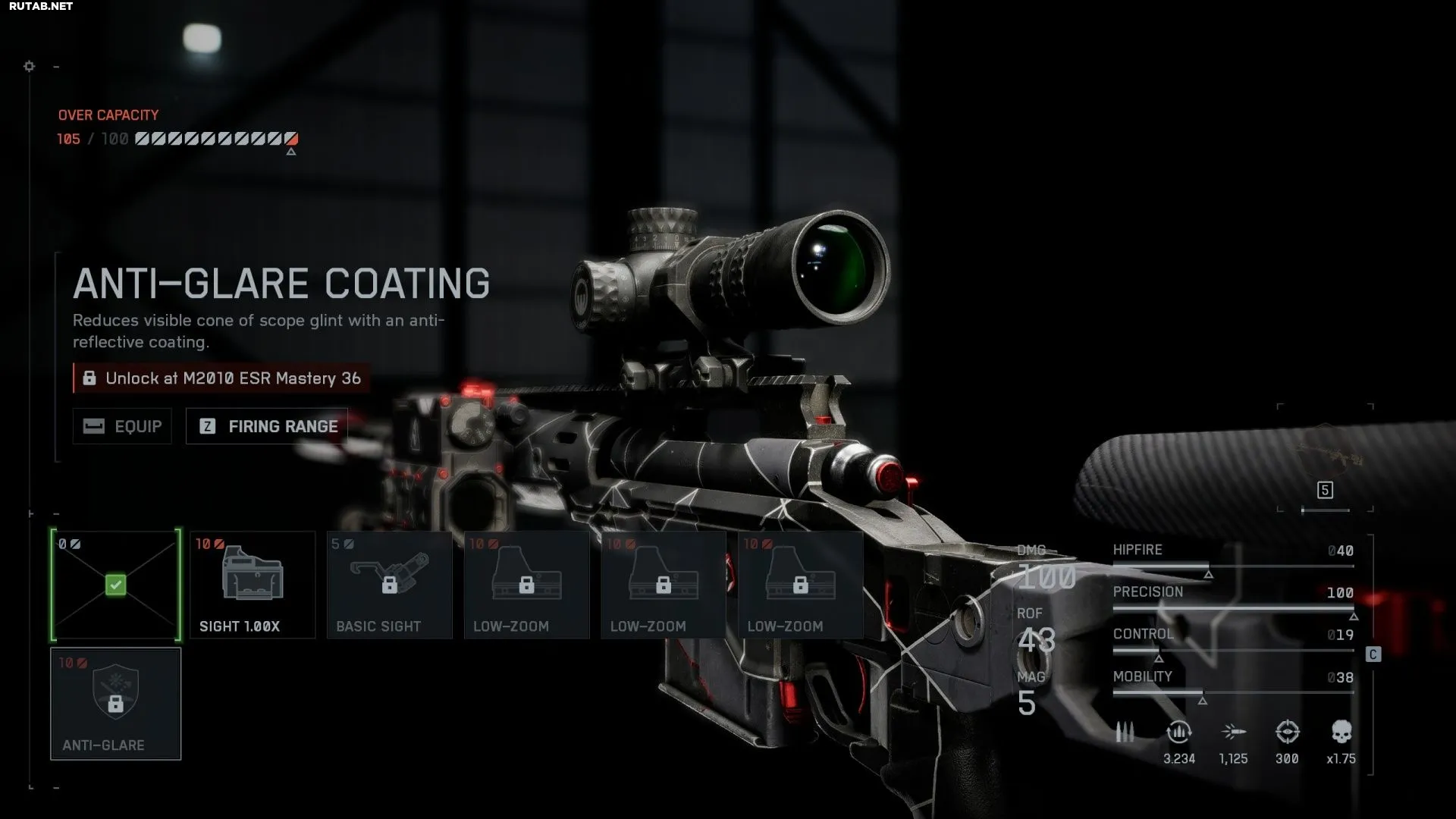 Чтобы снизить блик от прицела вашей снайперской винтовки, вы можете установить в слот для оптики модификацию AG Coating (Антибликовое покрытие). Оно сделает свечение вашего прицела более тусклым и менее заметным. Также оно сделает отражённые линии на вашем прицеле гораздо тоньше, что затруднит обнаружение вас противниками, если они не ведут активный поиск вашей позиции.
