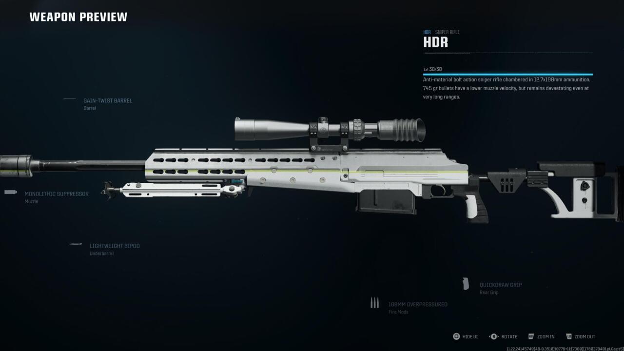 HDR по-прежнему остаётся самым мощным и популярным выбором для Warzone в шестом сезоне. Рекомендуемые обвесы в основном стандартны для этой снайперской винтовки, однако в шестом сезоне появились ночные версии карт Верданска и Rebirth Island, что делает тепловые прицелы гораздо более полезными.
