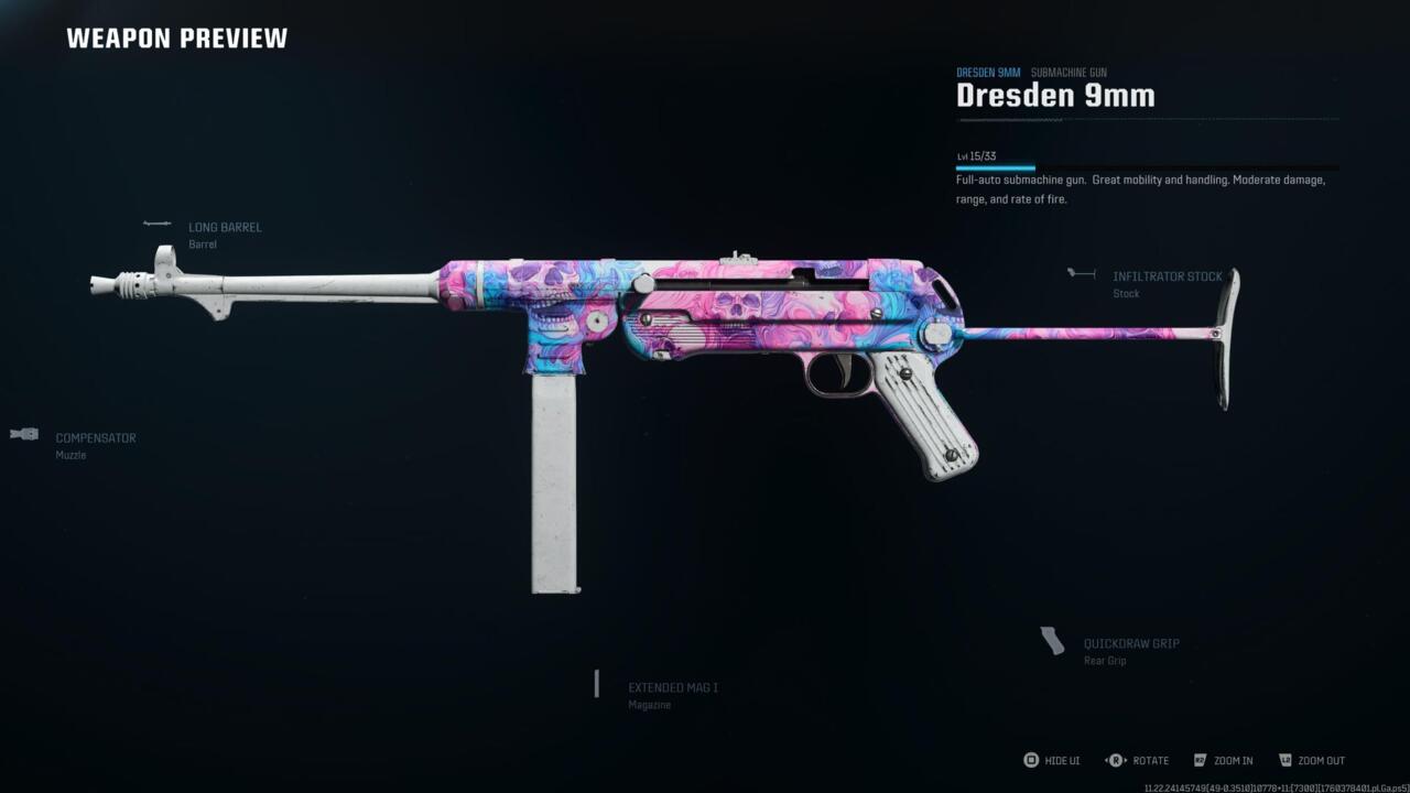 Новый Dresden 9mm из шестого сезона — это, по сути, знаменитый пистолет-пулемёт MP40, переименованный для Black Ops 6. Это мощное оружие, которое отлично показывает себя в ближнем бою. Рекомендуемые обвесы увеличат дистанцию эффективного поражения и скорость пули, а также уменьшат отдачу.