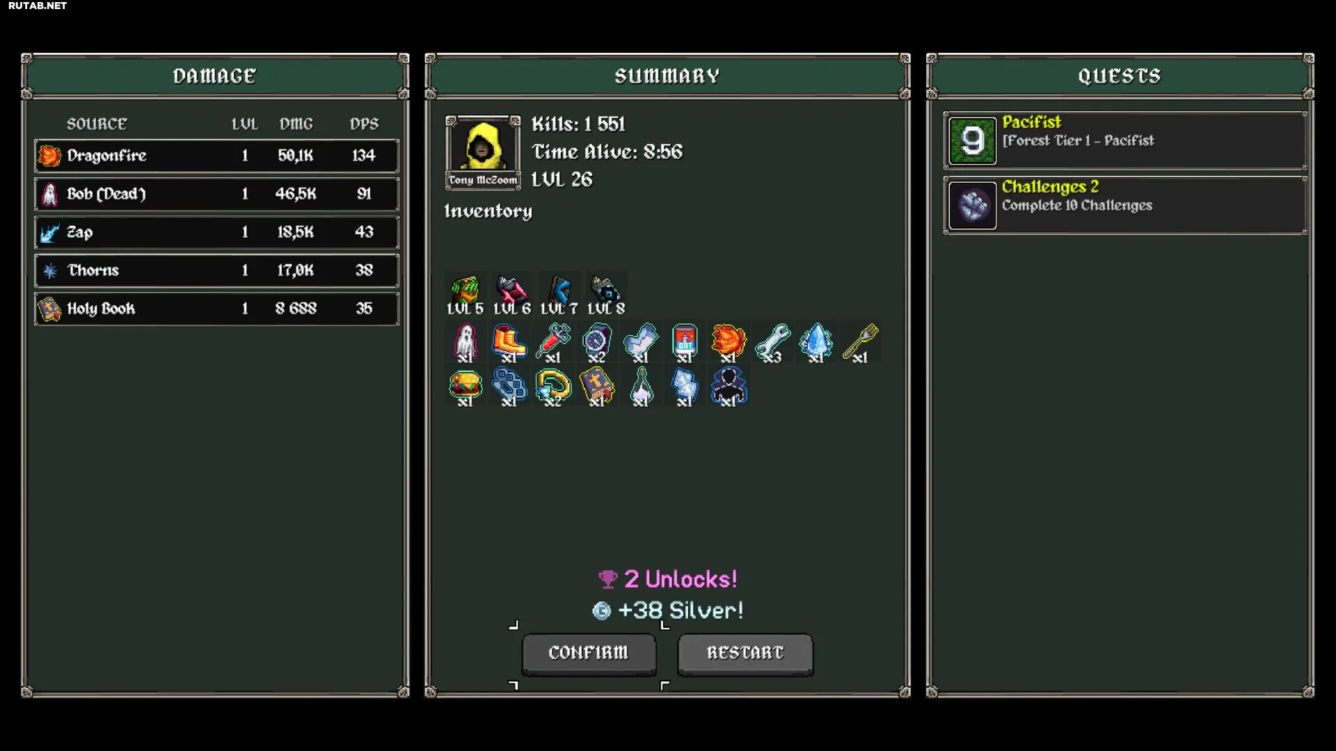 Не каждый забег в Испытании Пацифиста стоит доводить до конца. Если после одной-двух минут исследования карты игроки не нашли нужные тома или предметы, лучше нажать паузу и выбрать кнопку «Перезапуск».