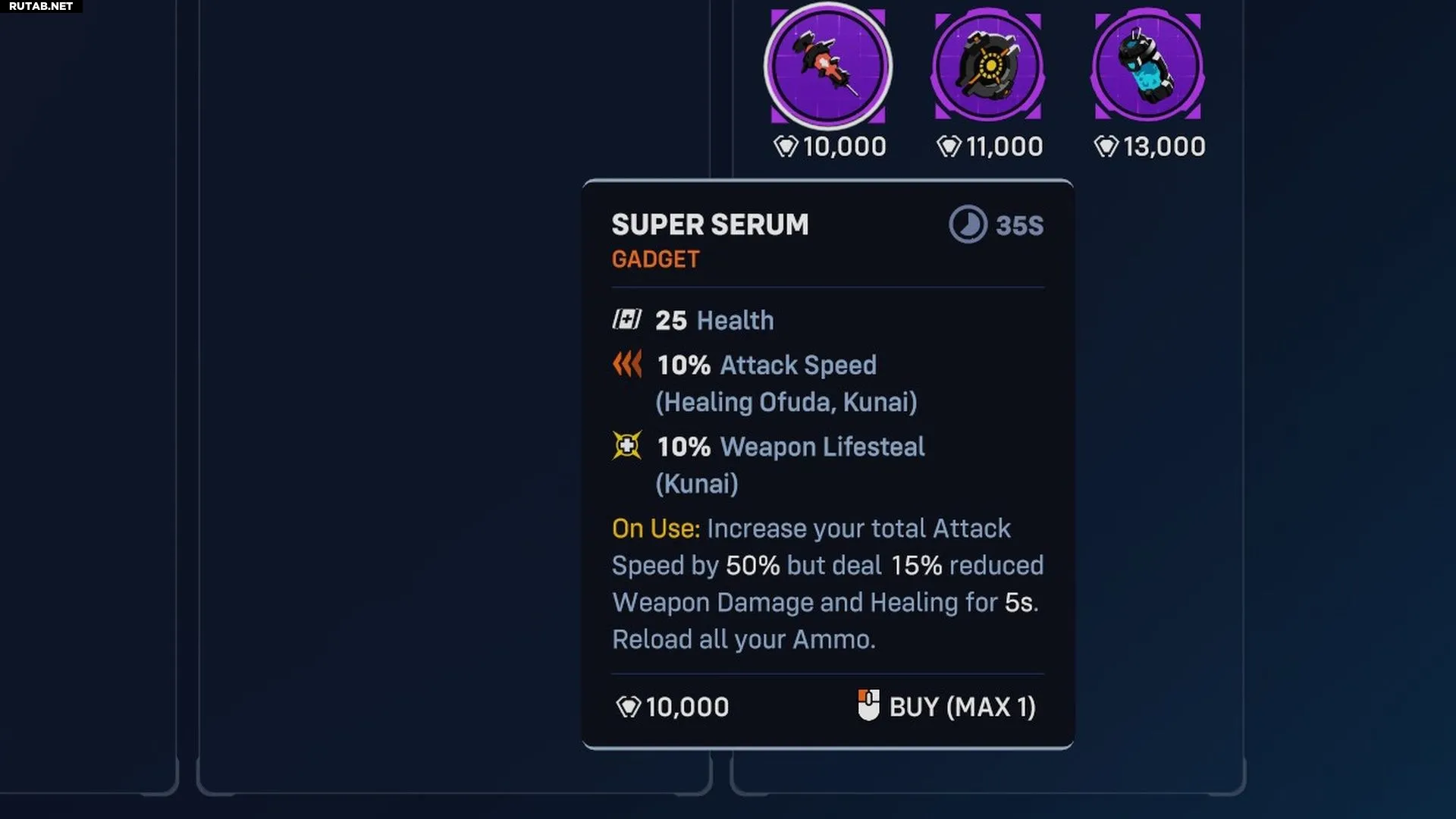 Super Serum — универсальный гаджет для любых сборок. Каждые 45 секунд он увеличивает общую скорость атаки на 50% с незначительным штрафом к урону и лечению. Встроенные бонусы к скорости атаки и вампиризму делают его идеальным для большинства D-сборок.