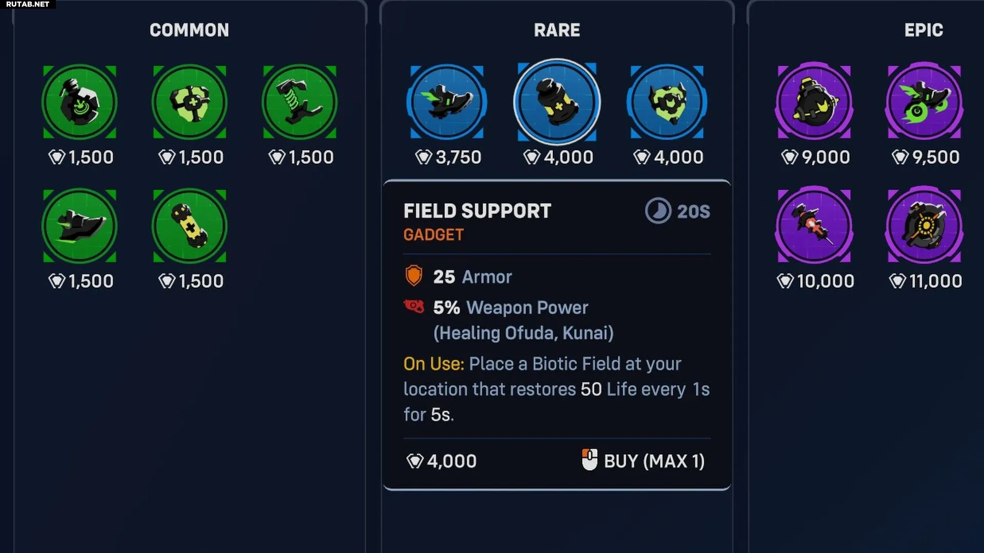 Среди бюджетных вариантов выделяется Field Support всего за 4,000 кредитов. Он создаёт лечебное поле Солдата-76 с перезарядкой 20 секунд. Поле действует 5 секунд, обеспечивая стабильное лечение с минимальным промежутком бездействия.