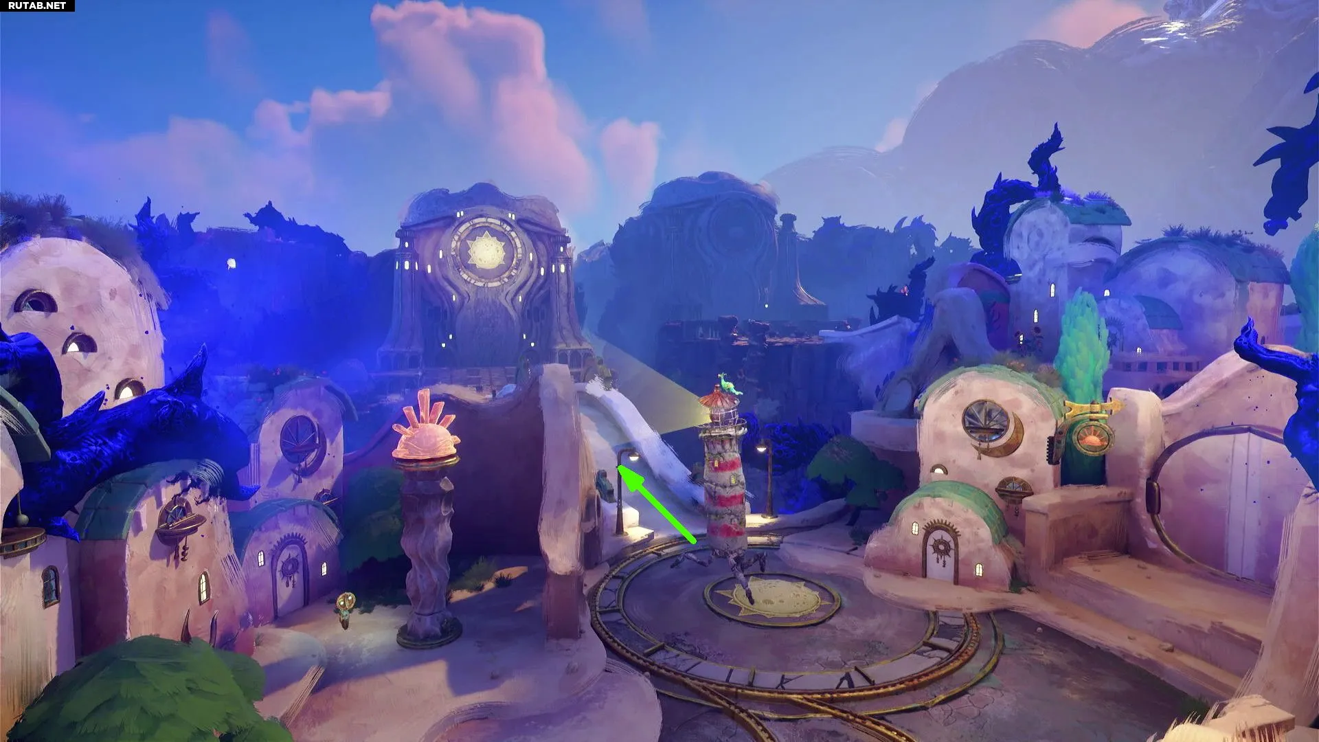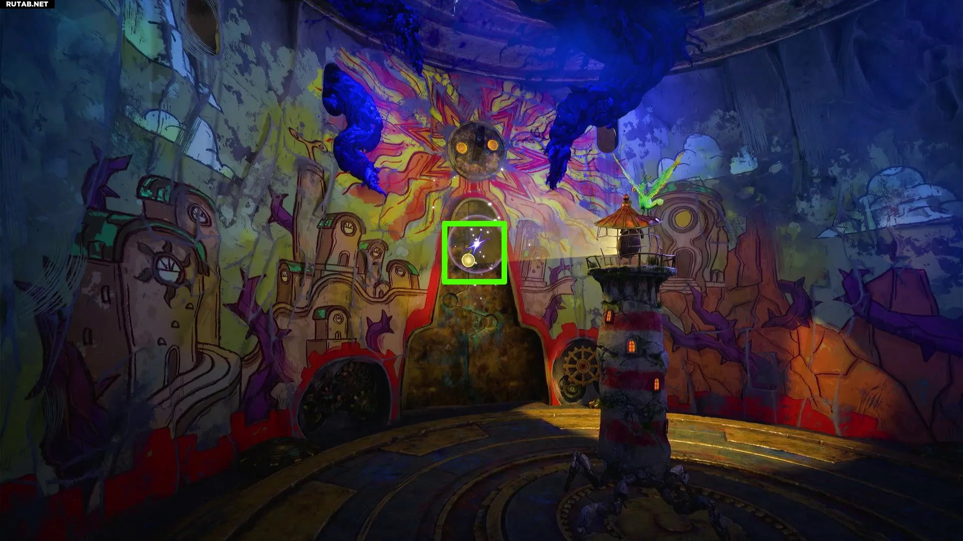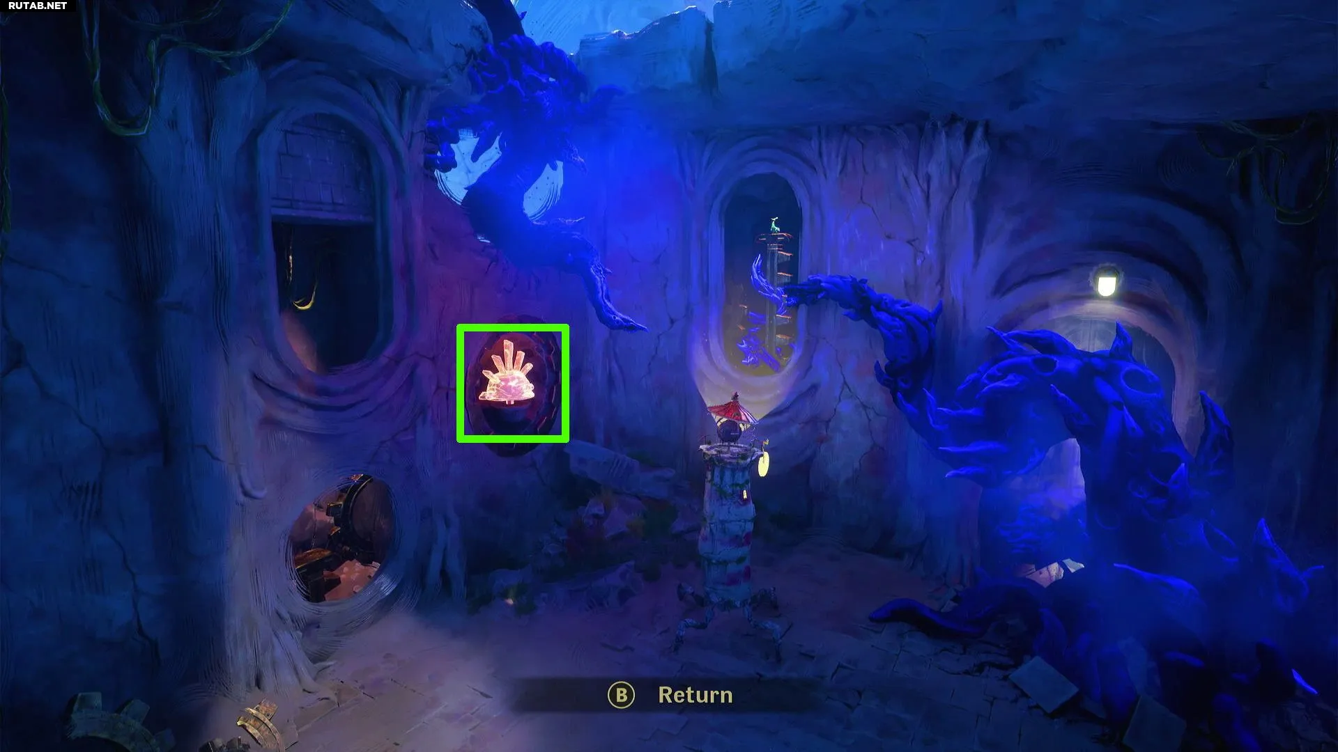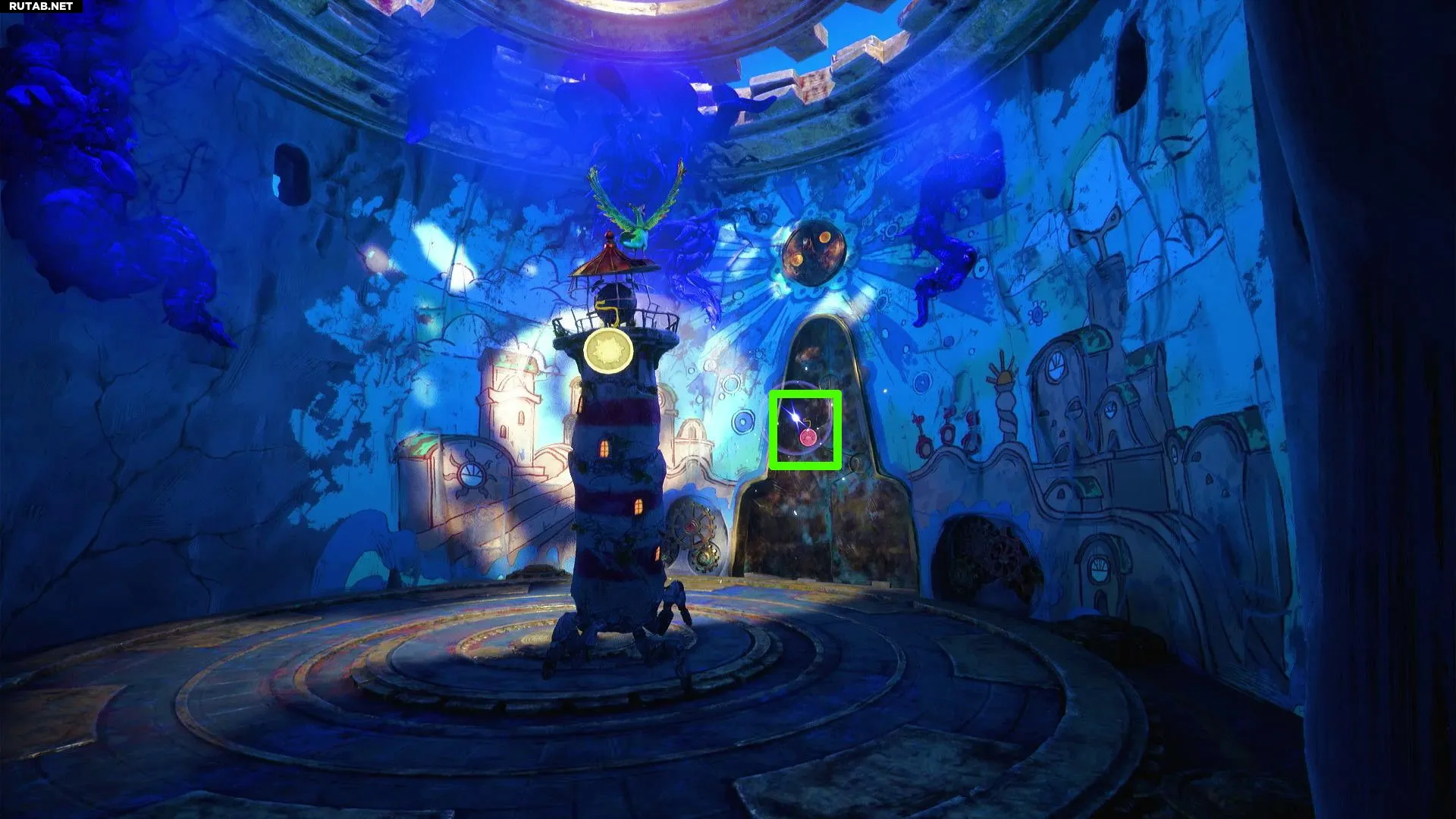 Пройдите через ворота и направьте свет на луну в конце пути. Теперь отправьте свою призрачную птицу к рукоятке по другую сторону ворот, направьте свет на полное солнце и поверните рукоятку, чтобы открыть ворота. Храм Луны находится прямо за ними — направьте свет на его фасад, чтобы расчистить вход.