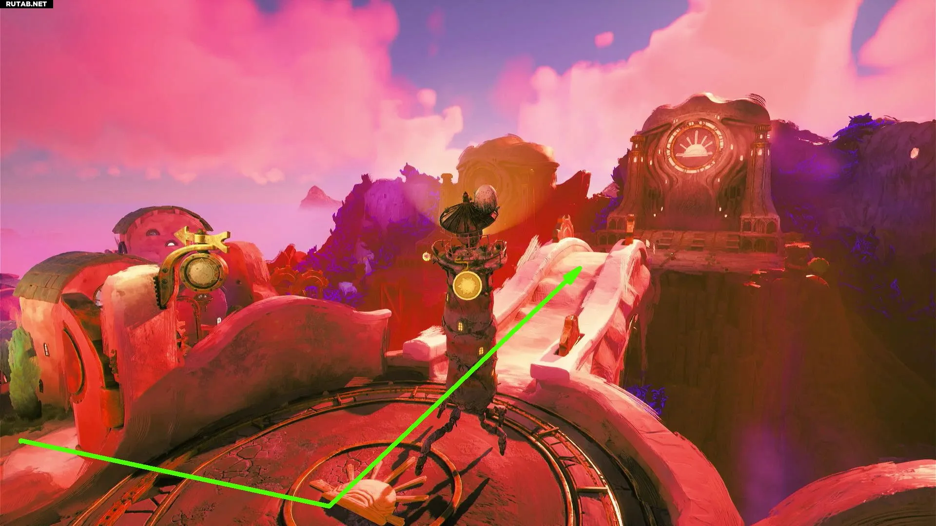 Стоит отметить, что направление света на солнца, заходящие солнца и луны, разбросанные по локации, вызывает нечто вроде путешествия во времени. Заходящее солнце переносит в прошлое, солнце — в настоящее, а луна — в будущее.