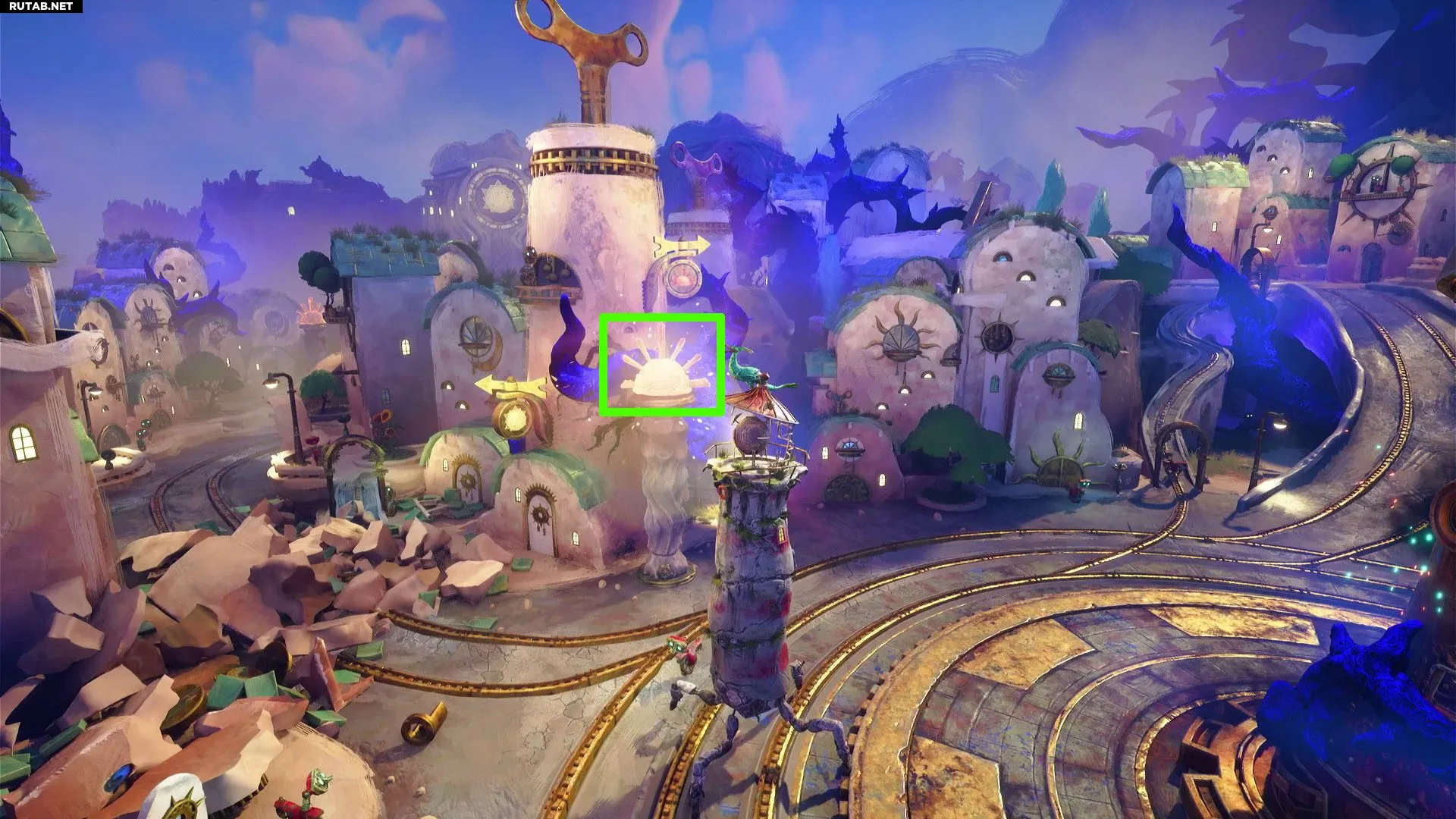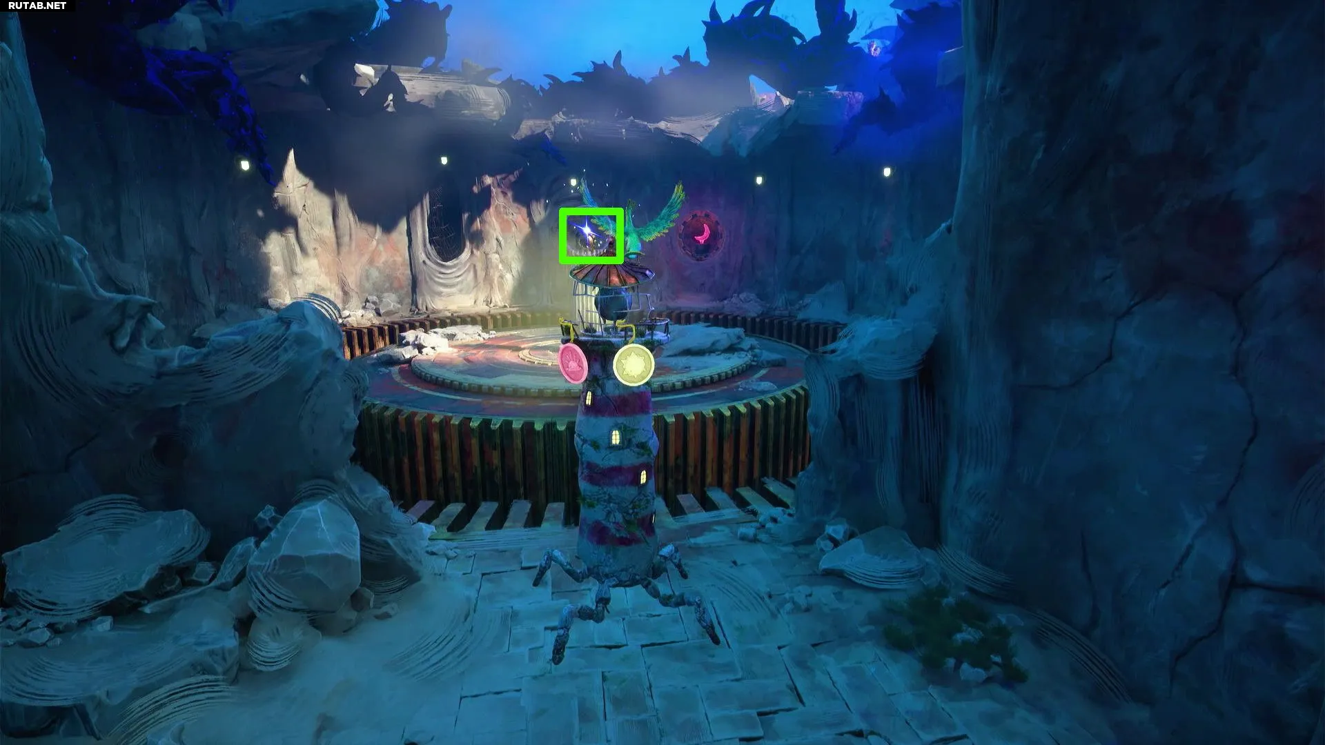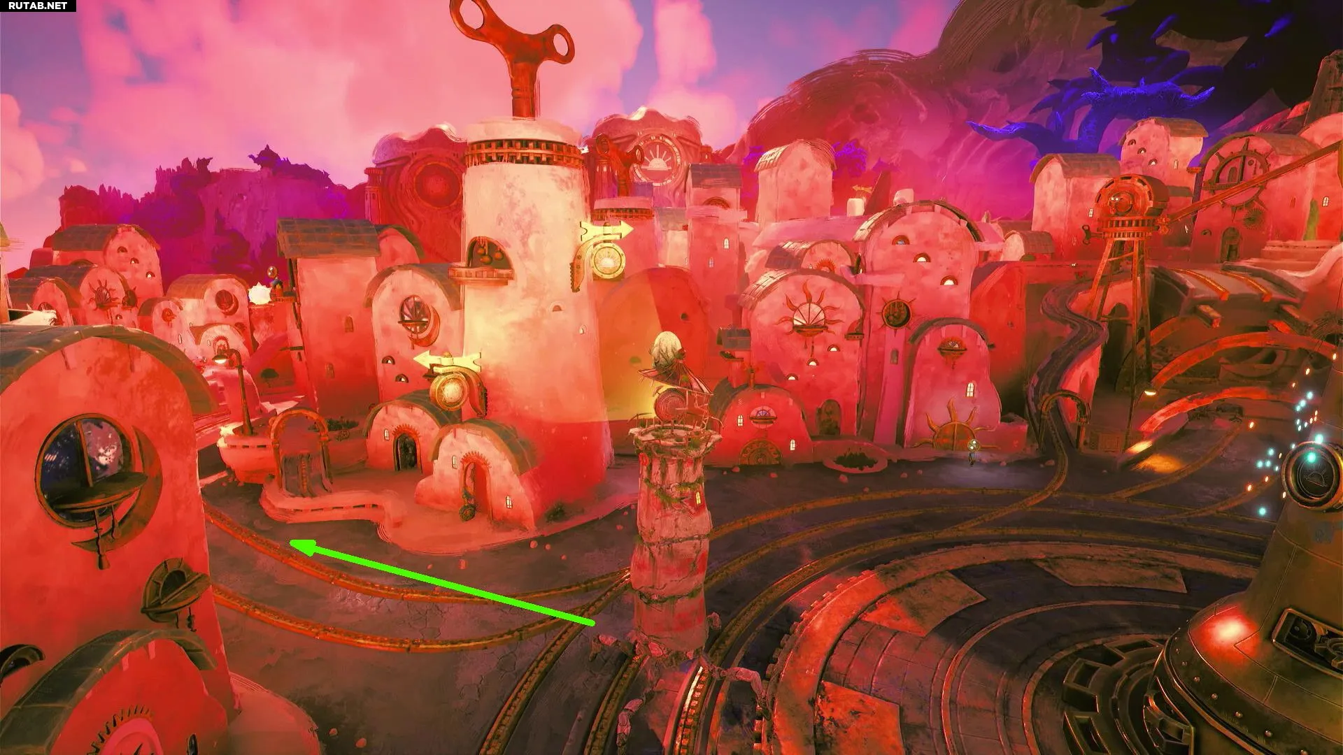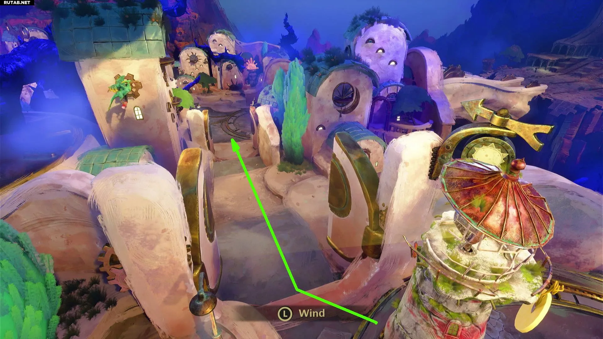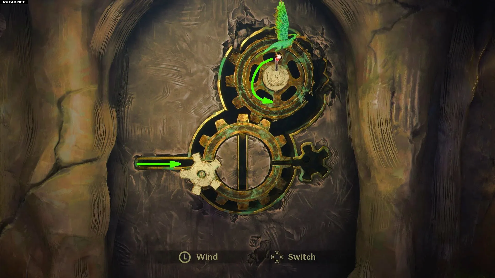В конце пути посмотрите налево и отправьте птицу к рукоятке, выступающей из высокого здания. Поверните рукоятку по часовой стрелке, чтобы открыть двое ворот и спуститься по ставшим доступными ступеням.