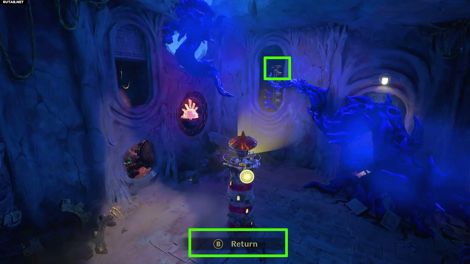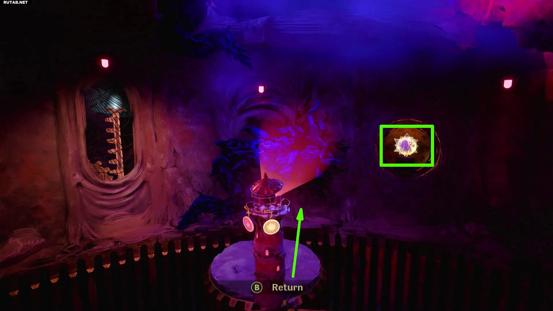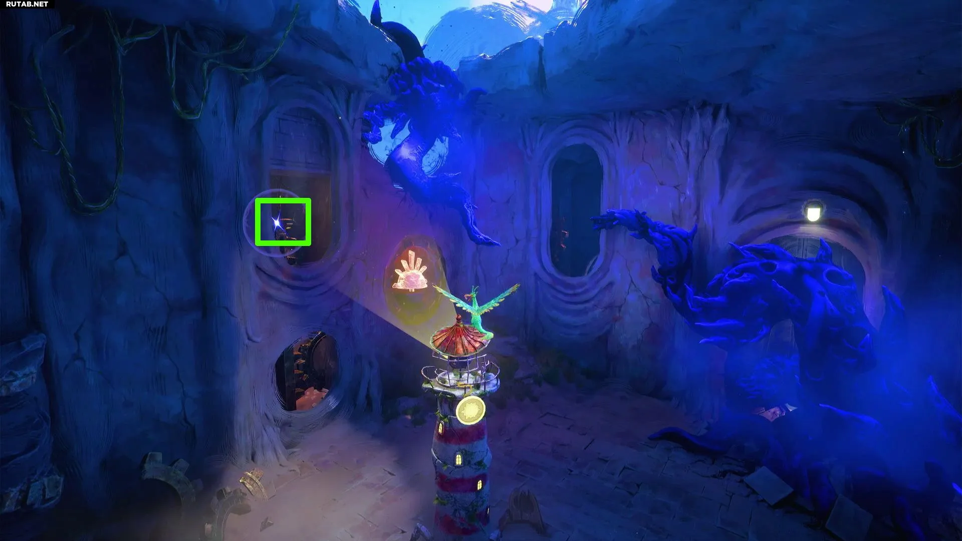 - Направьте свет на луну в стене и отправьте призрачную птицу на столб.