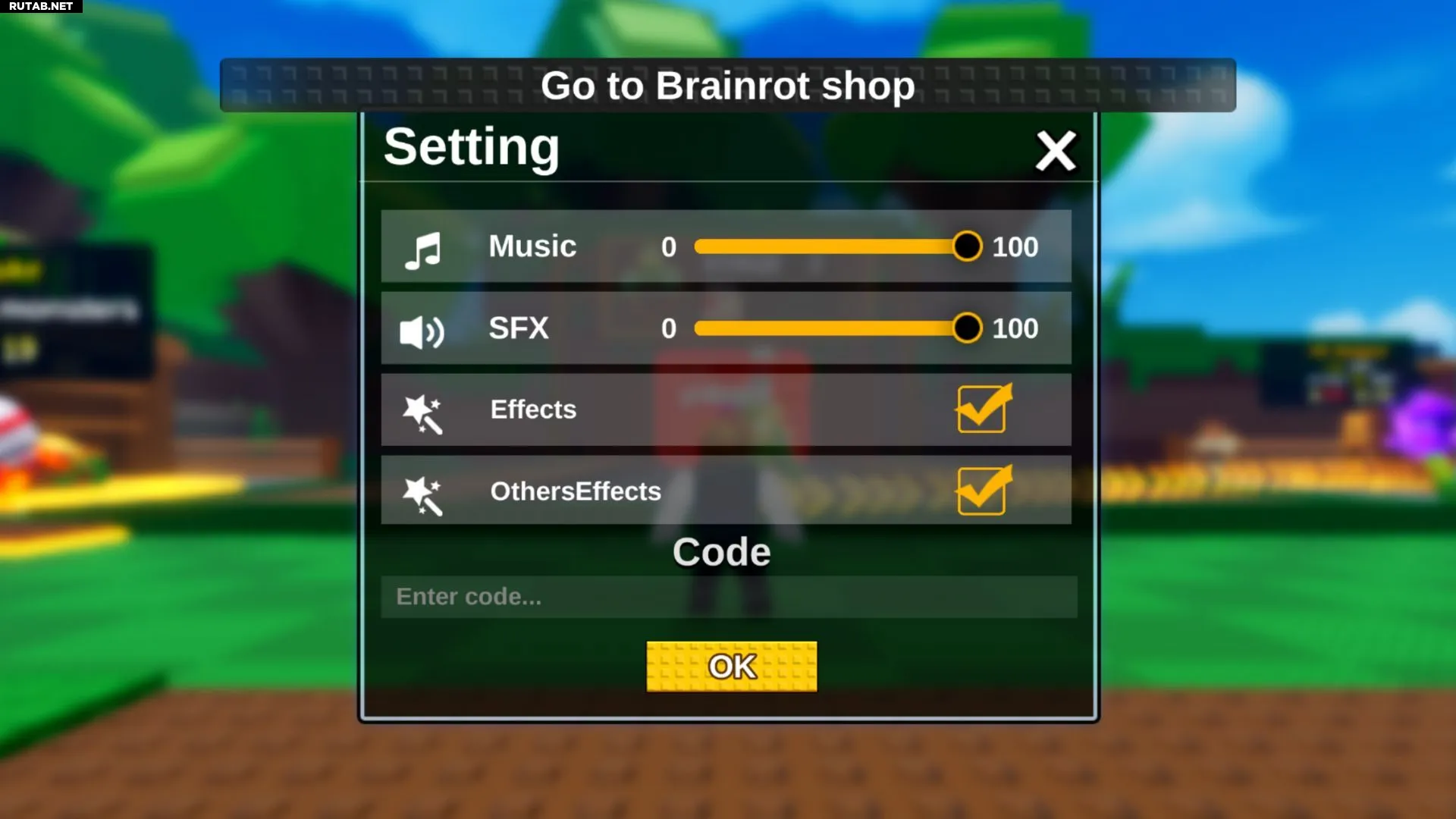 - Откроется меню настроек. Внизу вы увидите поле для ввода кода и жёлтую кнопку «OK». Введите один из активных кодов.