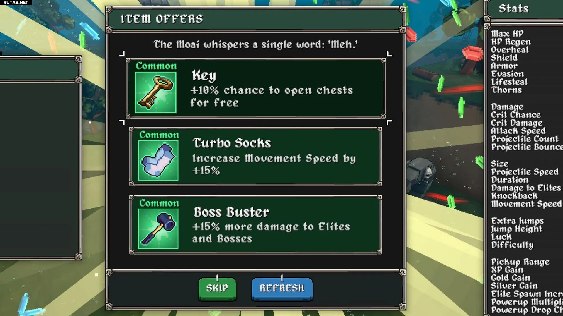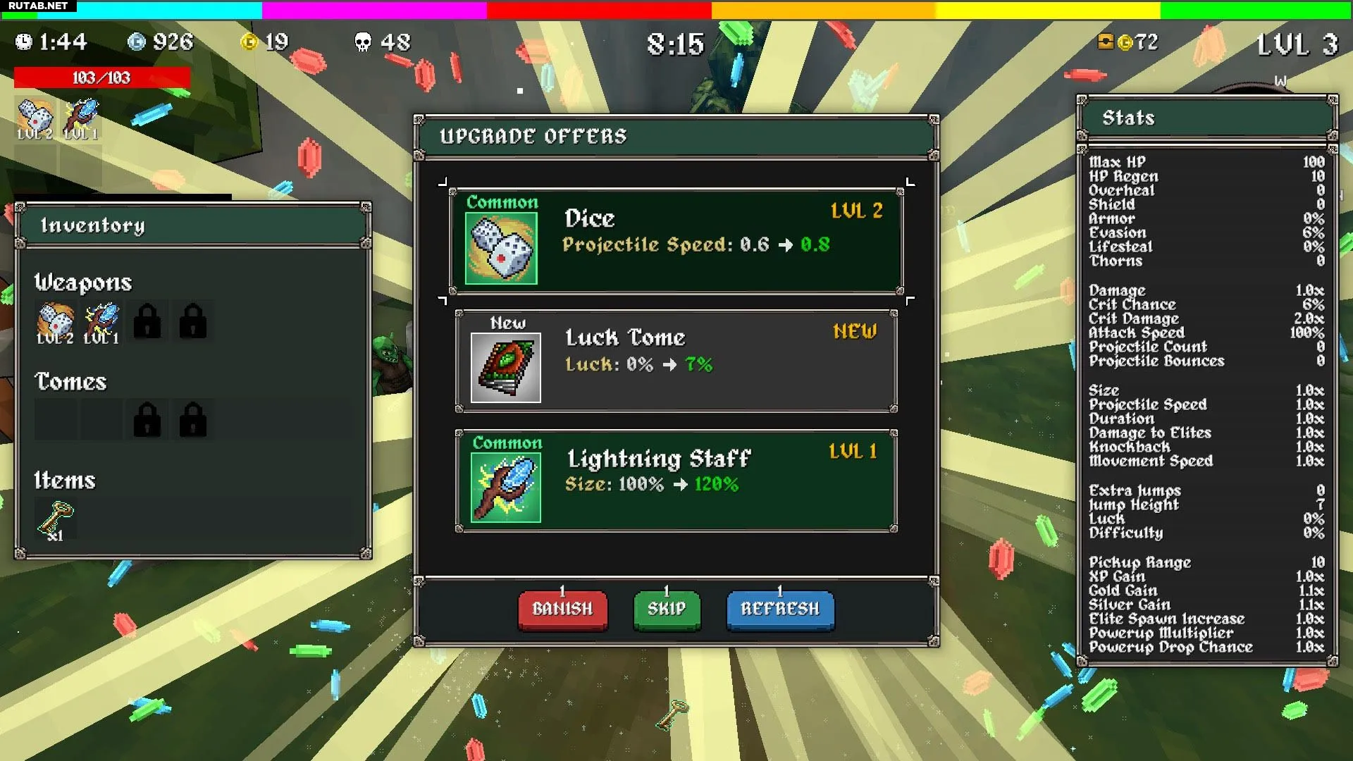 Игра за Dicehead в Megabonk ощущается как активация читерского кода. Этот персонаж начинает немного слабым и непредсказуемым, но к середине игры превращается в ходячую машину разрушения. Его пассивная способность даёт случайное постоянное усиление при каждом повышении уровня, и эти баффы бесконечно складываются. С правильным билдом Dicehead становится одним из самых мощных персонажей в игре.