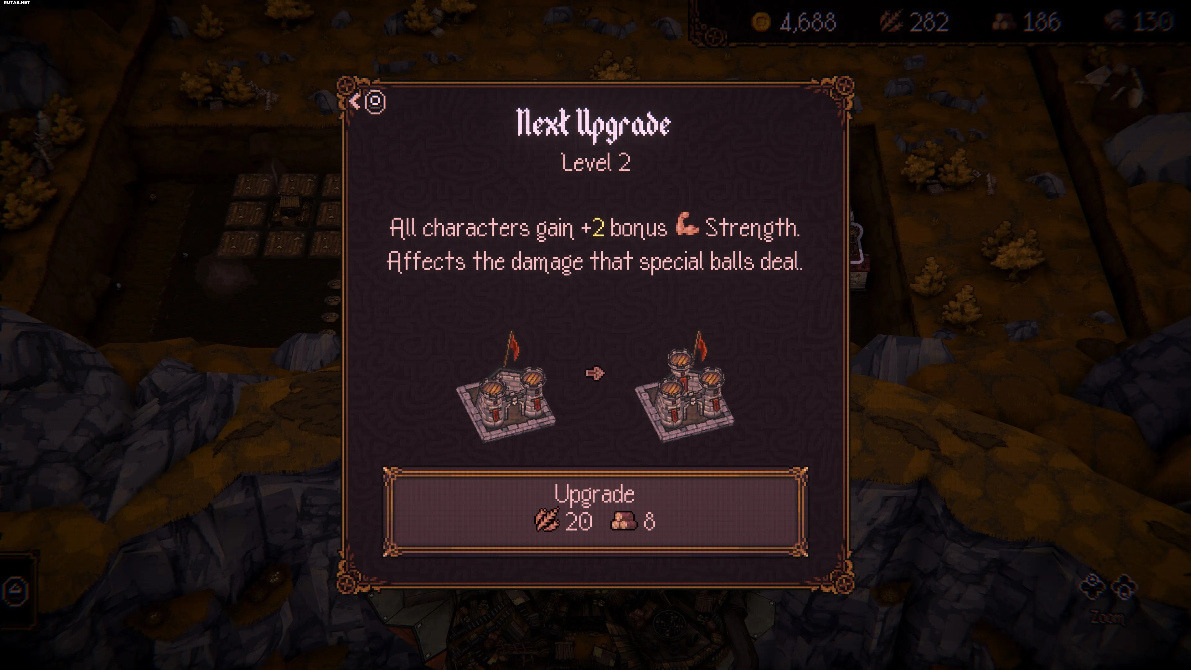 Один из лучших способов улучшить персонажей вне захода — это механика строительства города. Так игроки могут открывать новых персонажей и получать пассивные усиления. Стоит отметить, что проще всего строить конструкции в удобных местах, от которых будут отскакивать шары, — именно так всё и создаётся.