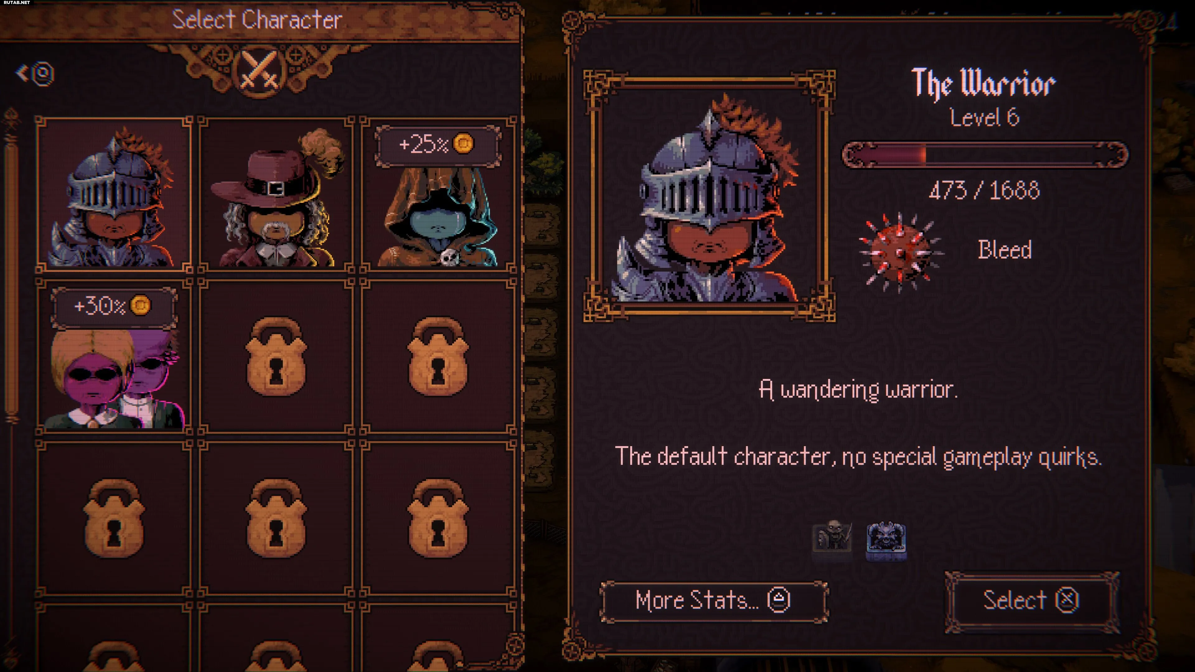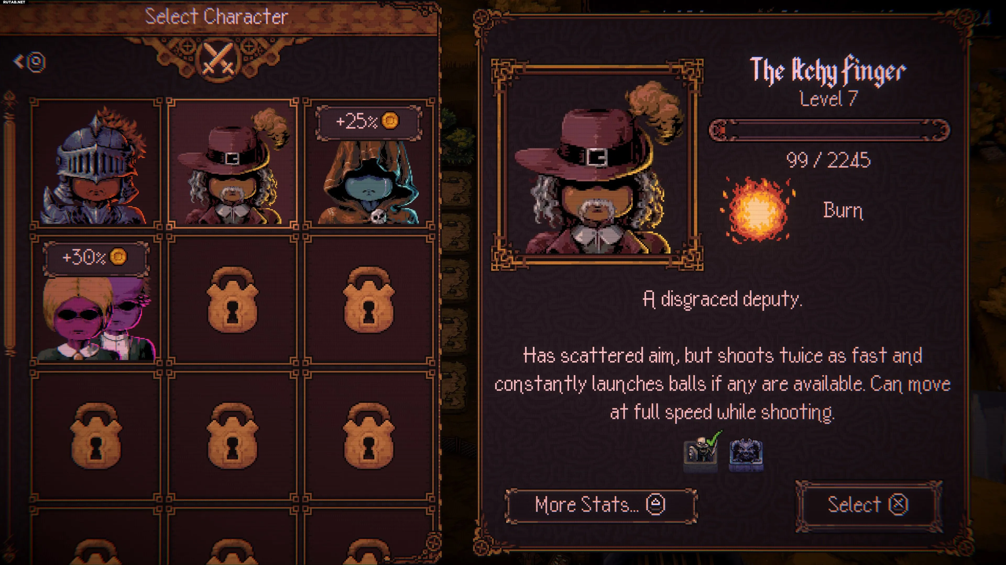 Игроки начинают с Воителя — сбалансированного персонажа с хорошими характеристиками. Второй персонаж, Большой Палец, является одним из лучших в игре в роли стрелка, и с ним можно пройти большинство уровней.