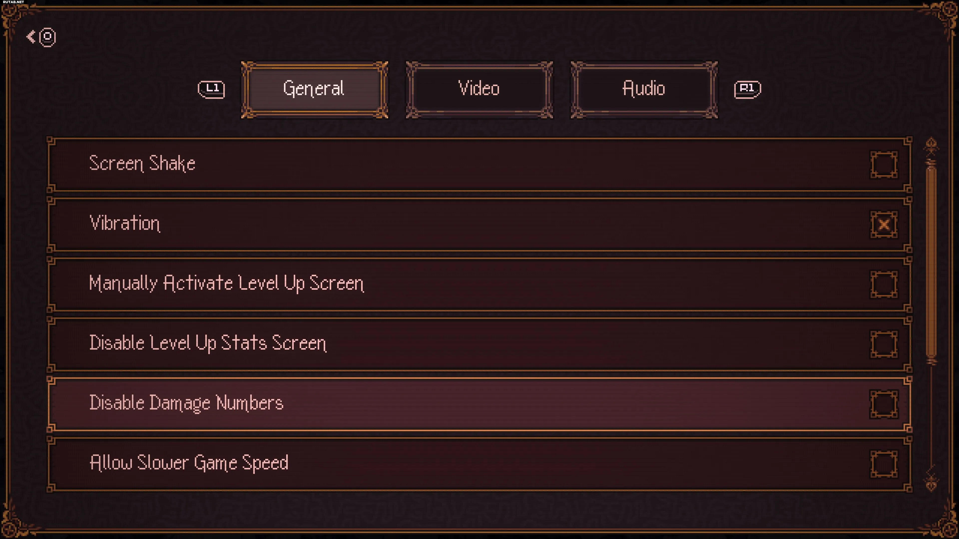 В игре не так много настроек и уж точно нет вспомогательных функций, которые облегчили бы прохождение в жанре рогалика. Однако есть две вещи, которые сделают геймплей плавнее, а картинку — приятнее. Во-первых, стоит зайти в настройки и отключить отображение цифр урона.
