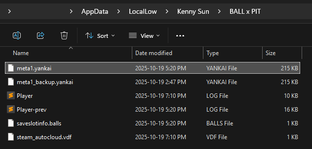 %appdata%\..\LocalLow\Kenny Sun\BALL x PIT\