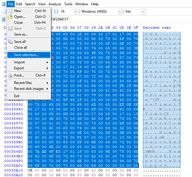 Откройте найденный файл в HEX-редакторе. Для поиска начала данных сохранения используйте комбинацию Ctrl+F и введите: