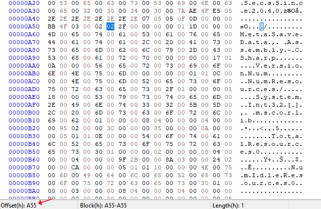 Запомните значение смещения (offset) в левом нижнем углу редактора.