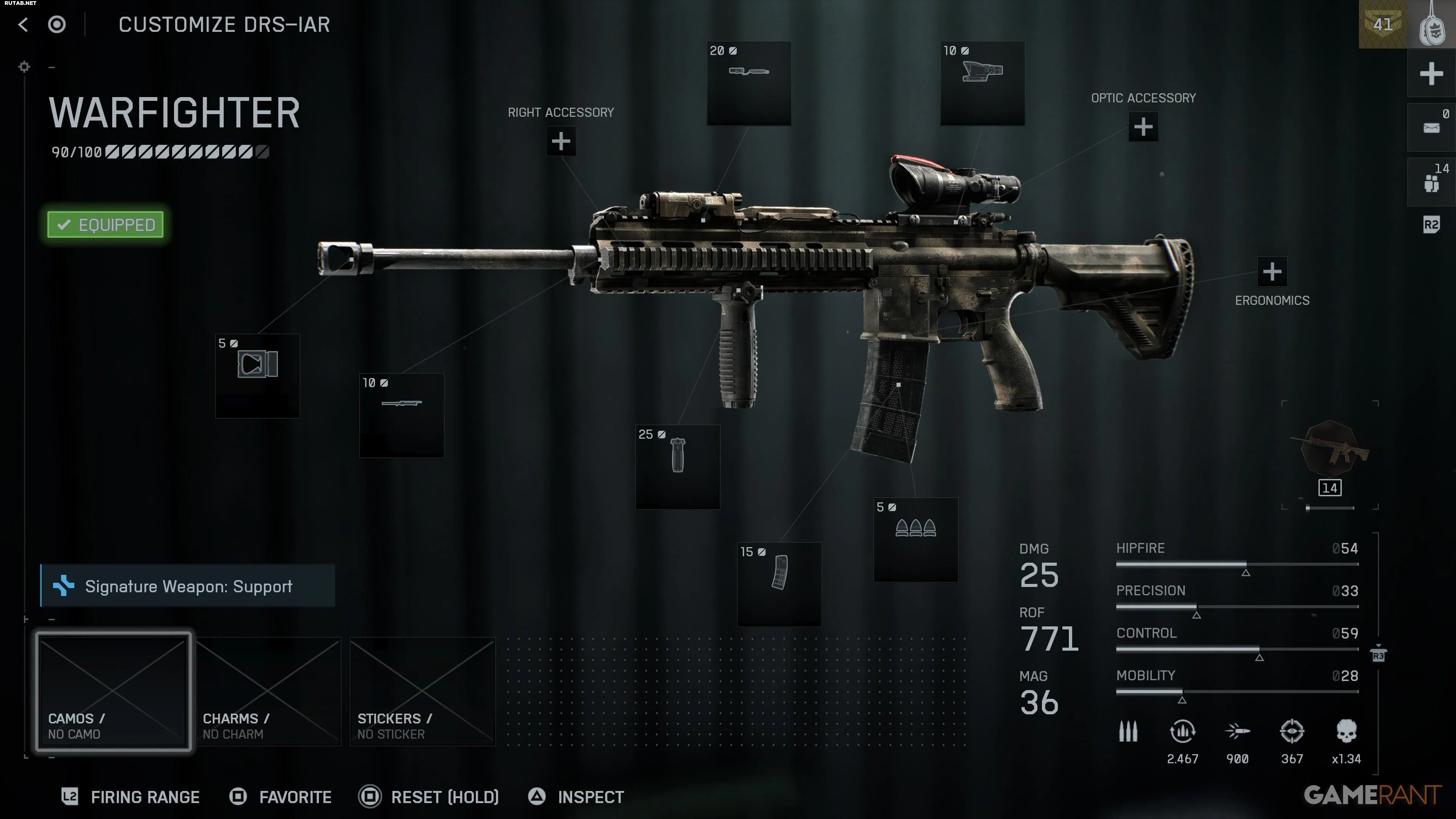 Первый важный модуль — ствол 20" SDM-R, который значительно увеличивает начальную скорость пули на 180. Это необходимо, чтобы по-настоящему раскрыть потенциал оружия, позволяя его скорости пули в 900 быстро уничтожать противников.