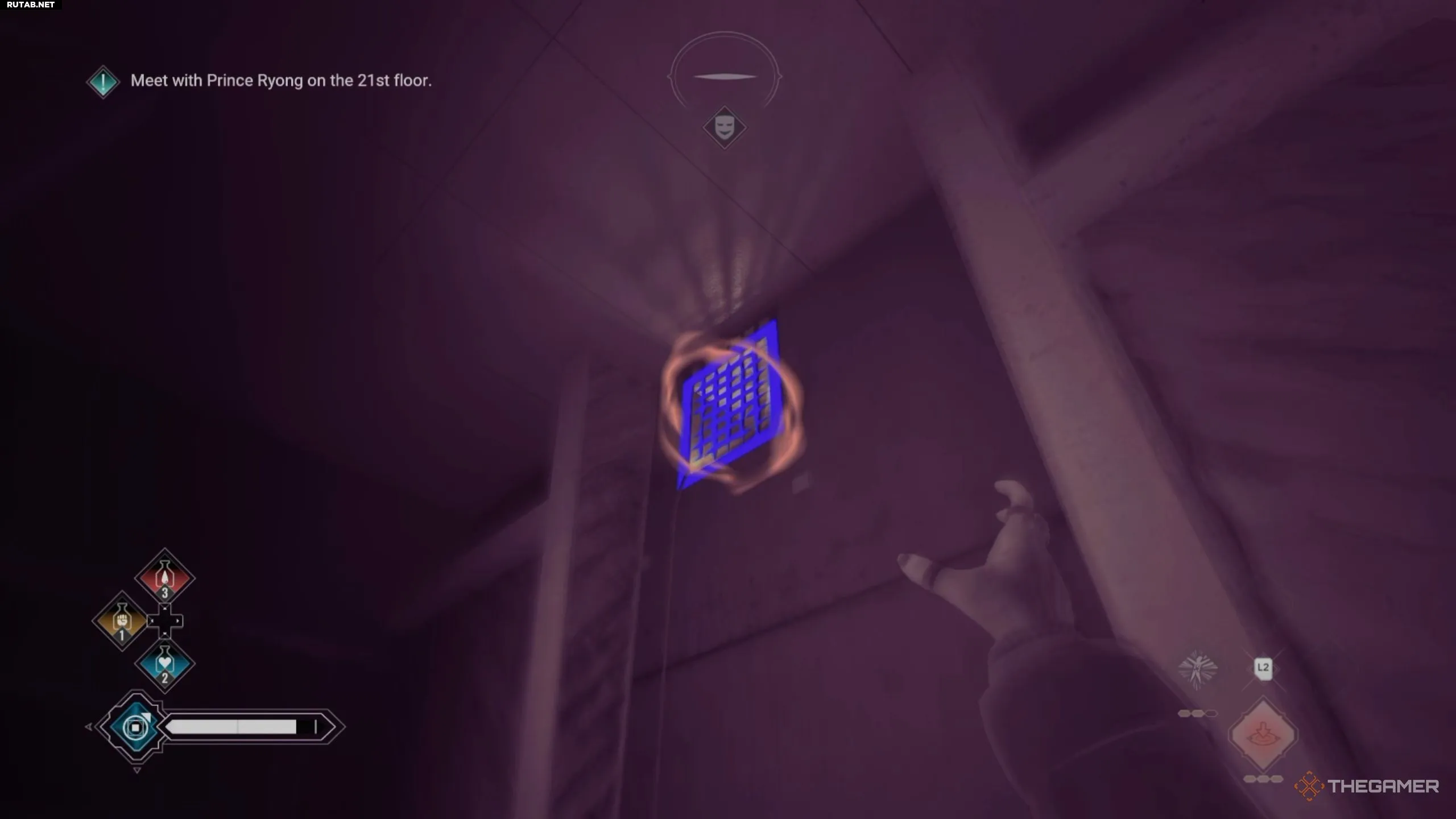 Для этого пройдите в коридор справа от лифтов и посмотрите наверх правой стены, где вы найдёте вентиляционную решётку, которую можно открыть телекинезом. После этого используйте двойной прыжок, чтобы забраться внутрь. Однако перед этим вы можете зайти слева от лифтов и найти зелье рядом со знаком предупреждения.