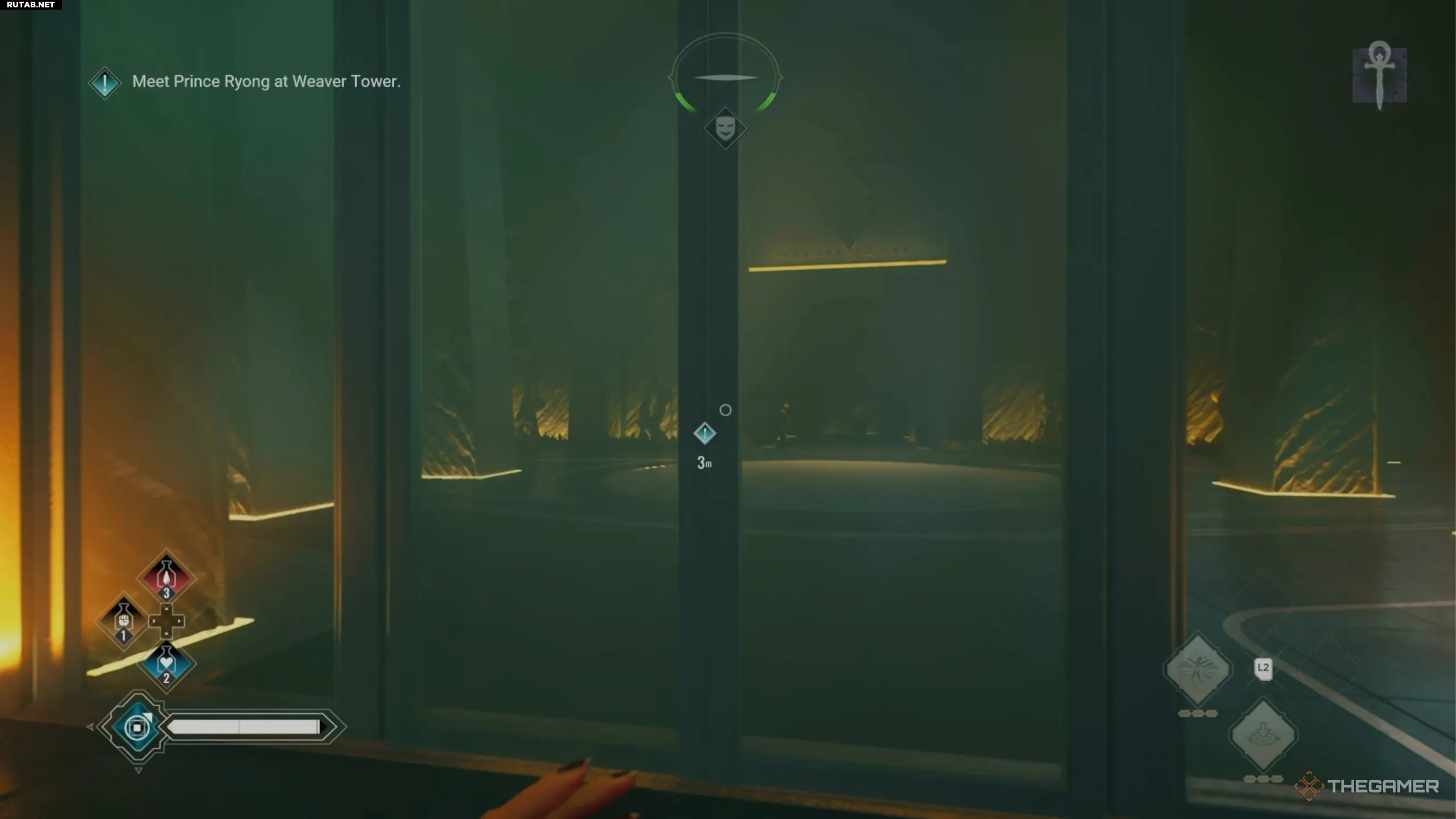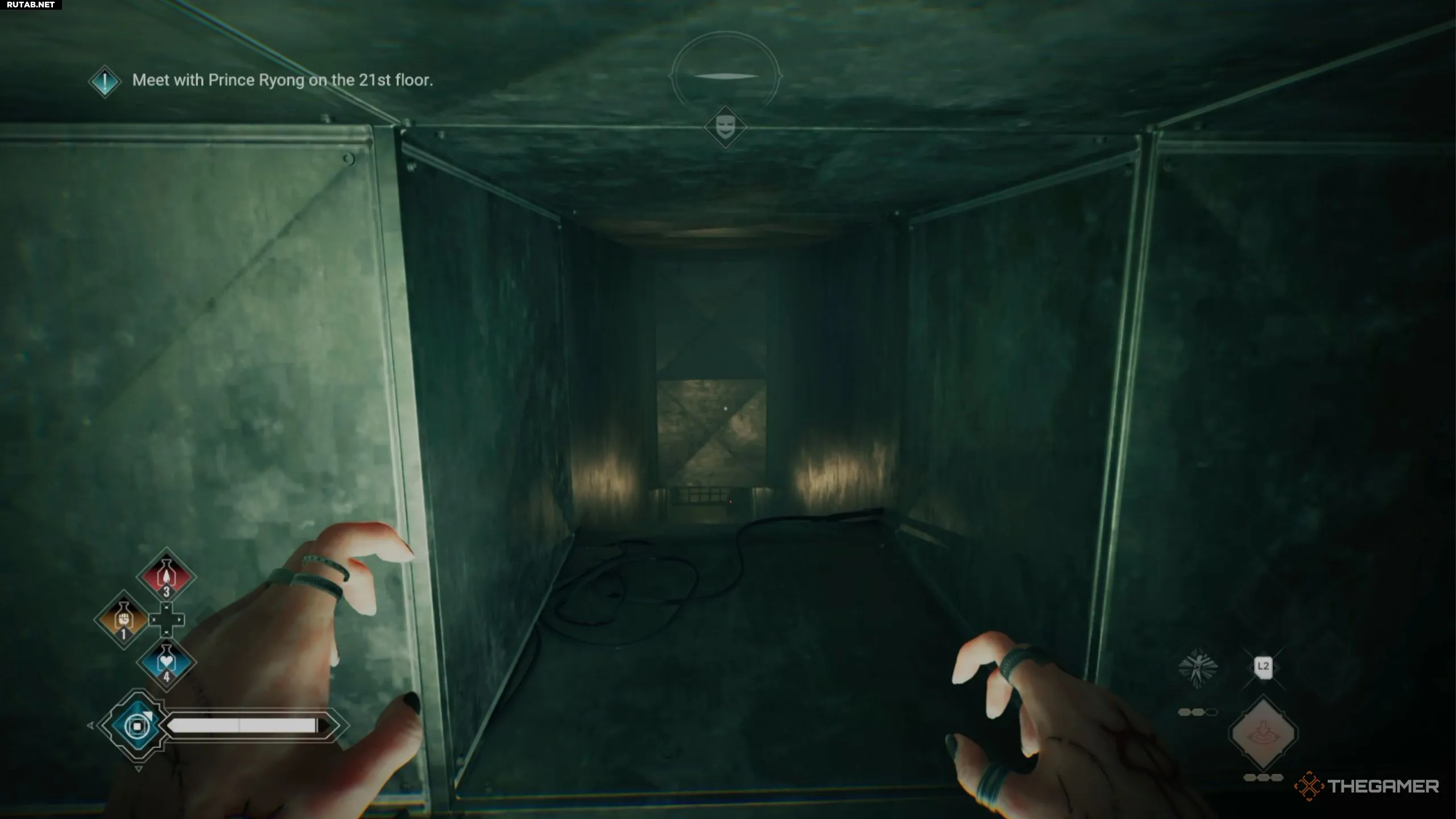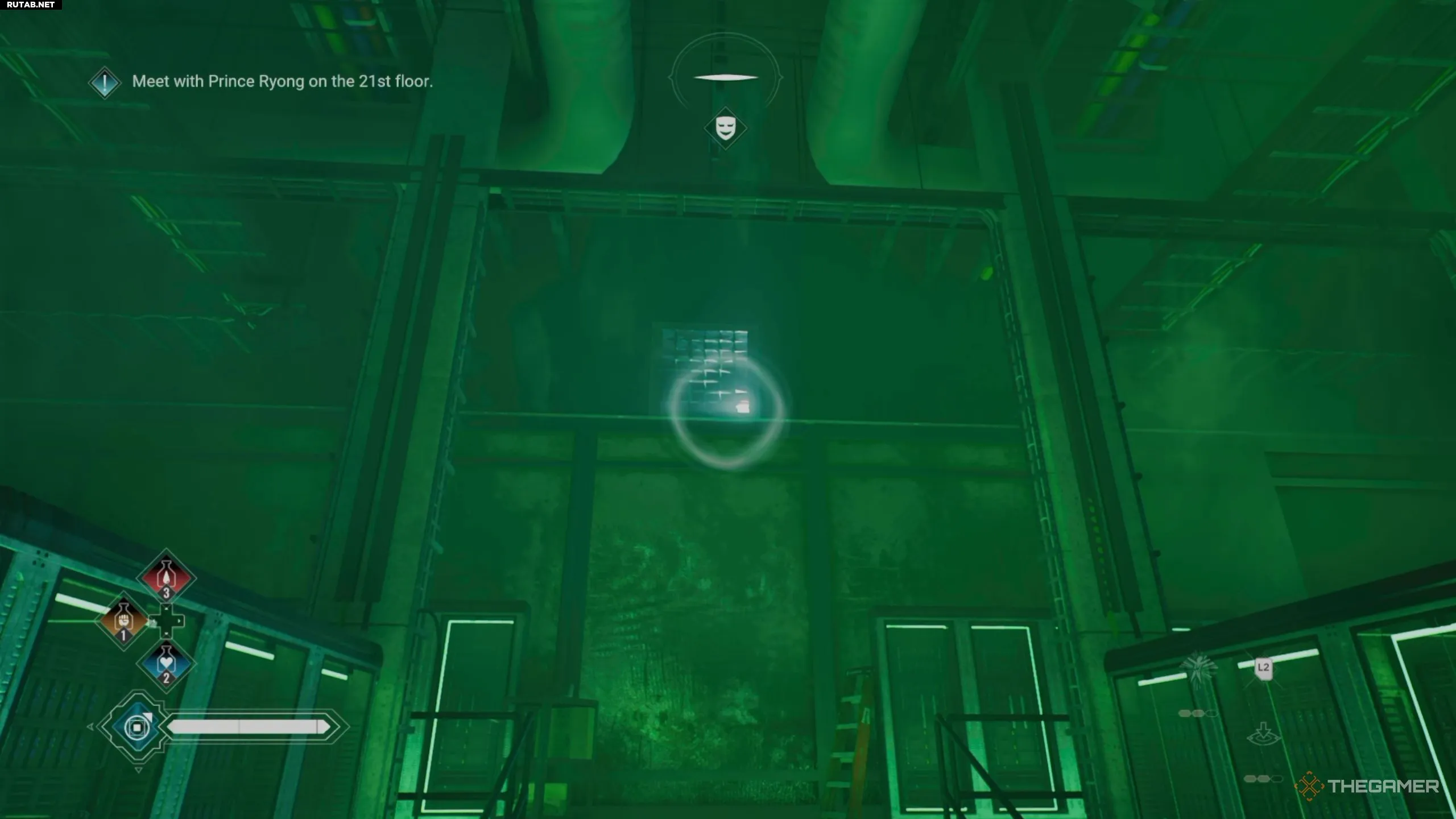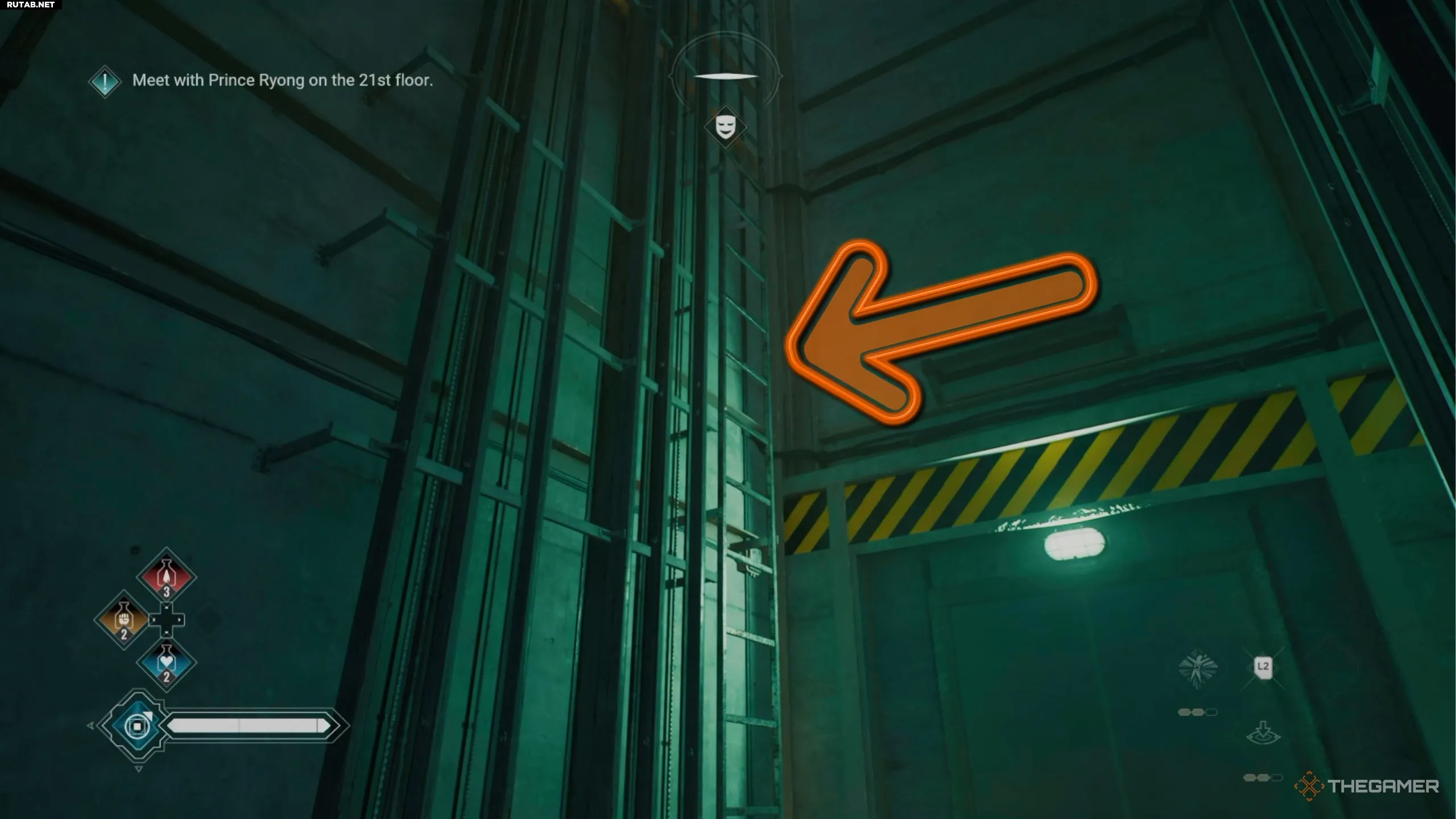Продолжайте подниматься по шахте лифта, ориентируясь на красные огни — они подсказывают, куда нужно прыгать. На самом верху вас ждёт очередная вентиляционная шахта, через которую можно проползти. Выбравшись из неё, вы окажетесь на верхнем этаже Башни Ткача, в лаборатории, где вас ждёт Сафия.