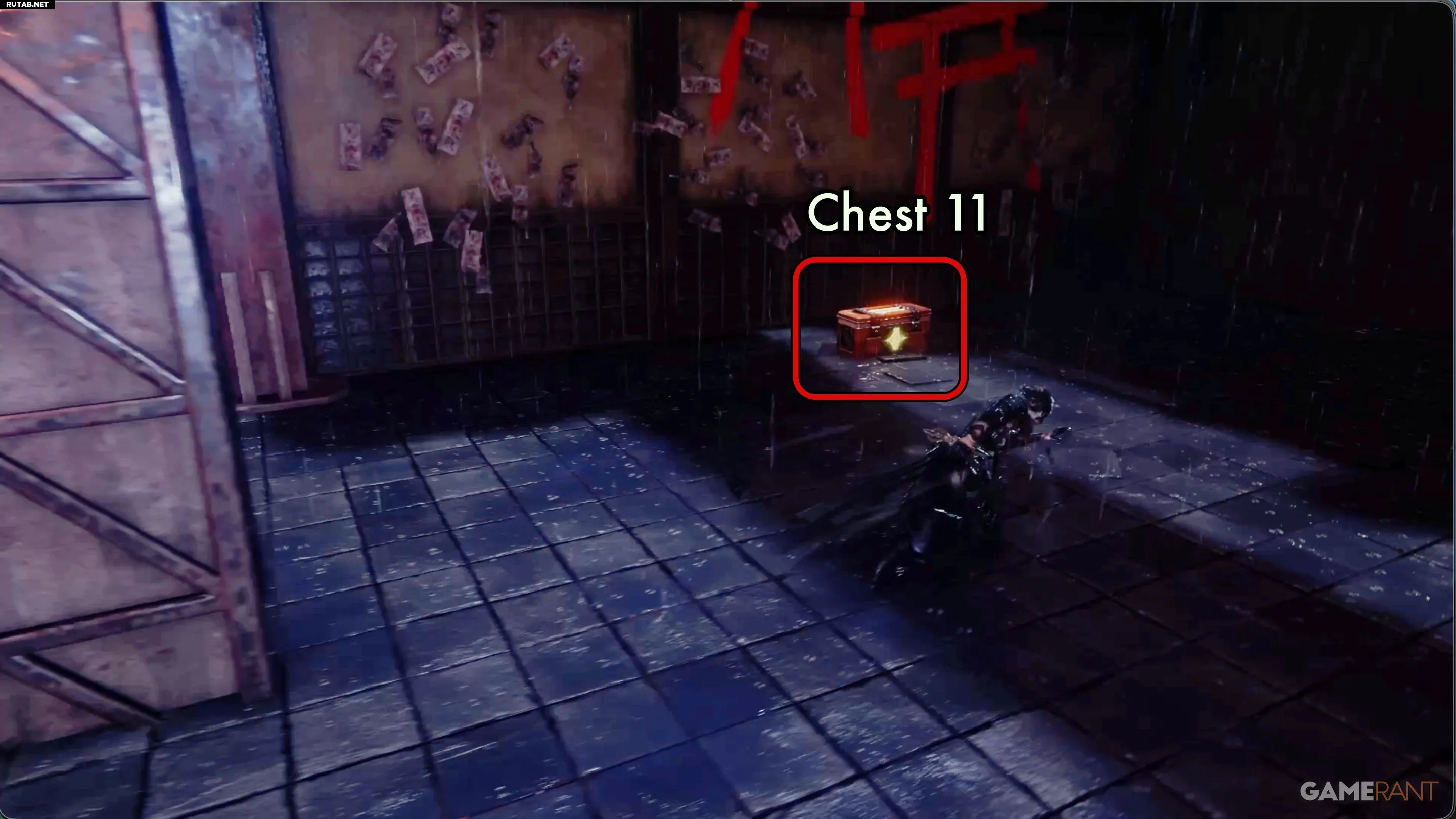 Следуйте по основному пути, используя проволоку каддис, затем спуститесь в финальную камеру. У ограждения на противоположном от выхода к боссу конце вы найдёте сундук 10. В нём находится фимиам возрождения x1. Сундук 11, последний сундук, расположен справа от выхода, у стены. Внутри вас ждёт Божественный эликсир жизни x1.
