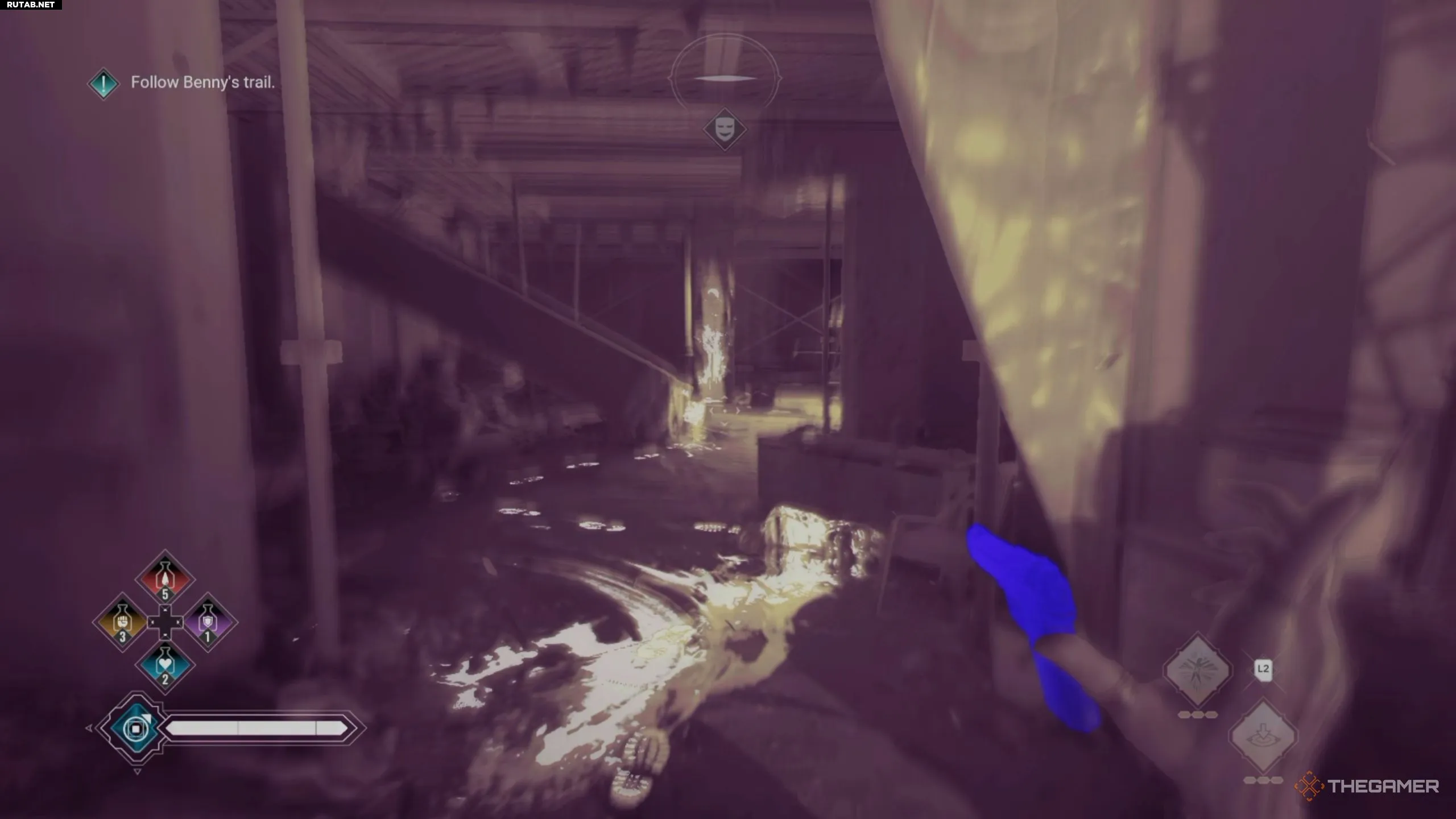 Вы можете легко следовать по этому следу внутрь здания и спуститься на несколько этажей вниз, чтобы достичь местонахождения Бенни.