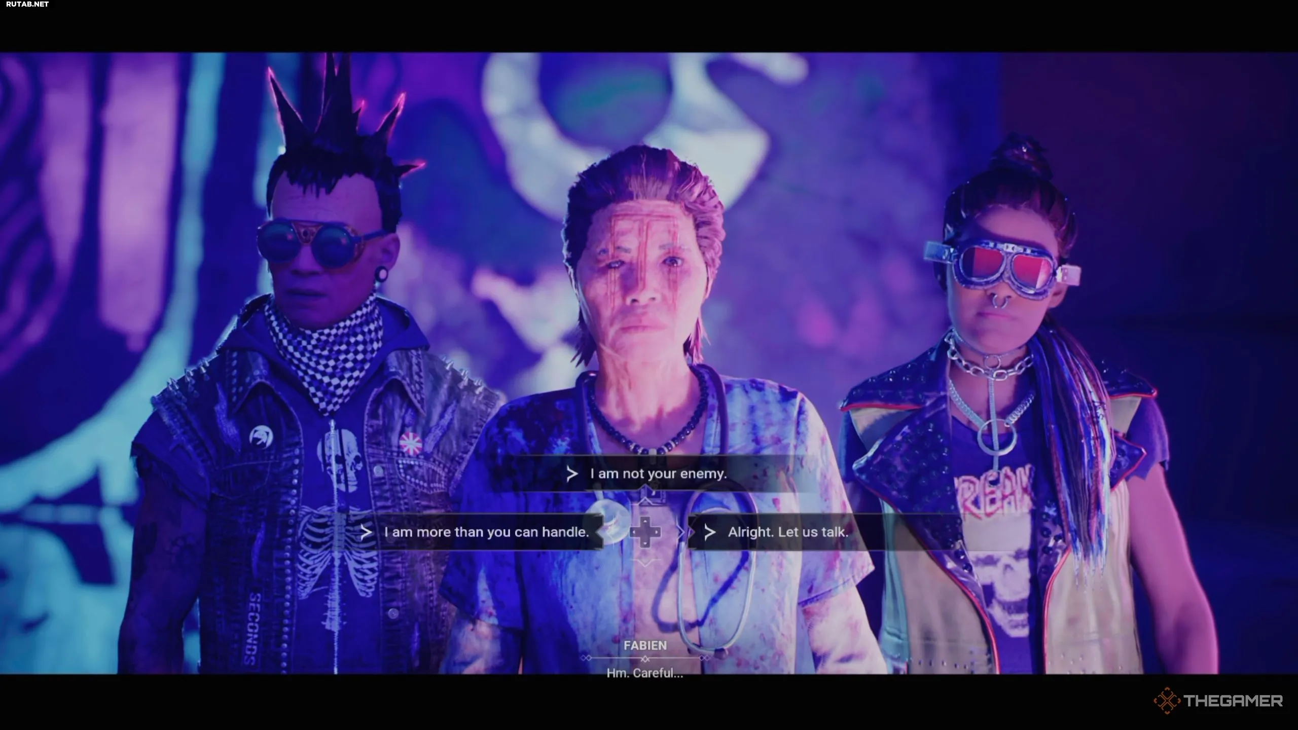 Как только вы отвлекли анархов, вы можете приблизиться к двери и запустить диалог, который также обнаружит след Бенни, выделенный белым цветом, когда вы используете обострённую чувствительность.