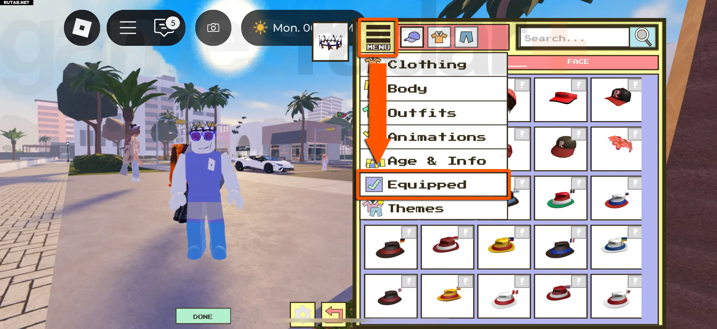 - Нажмите на стрелку в правой части экрана, чтобы открыть меню, и выберите значок AVATAR.