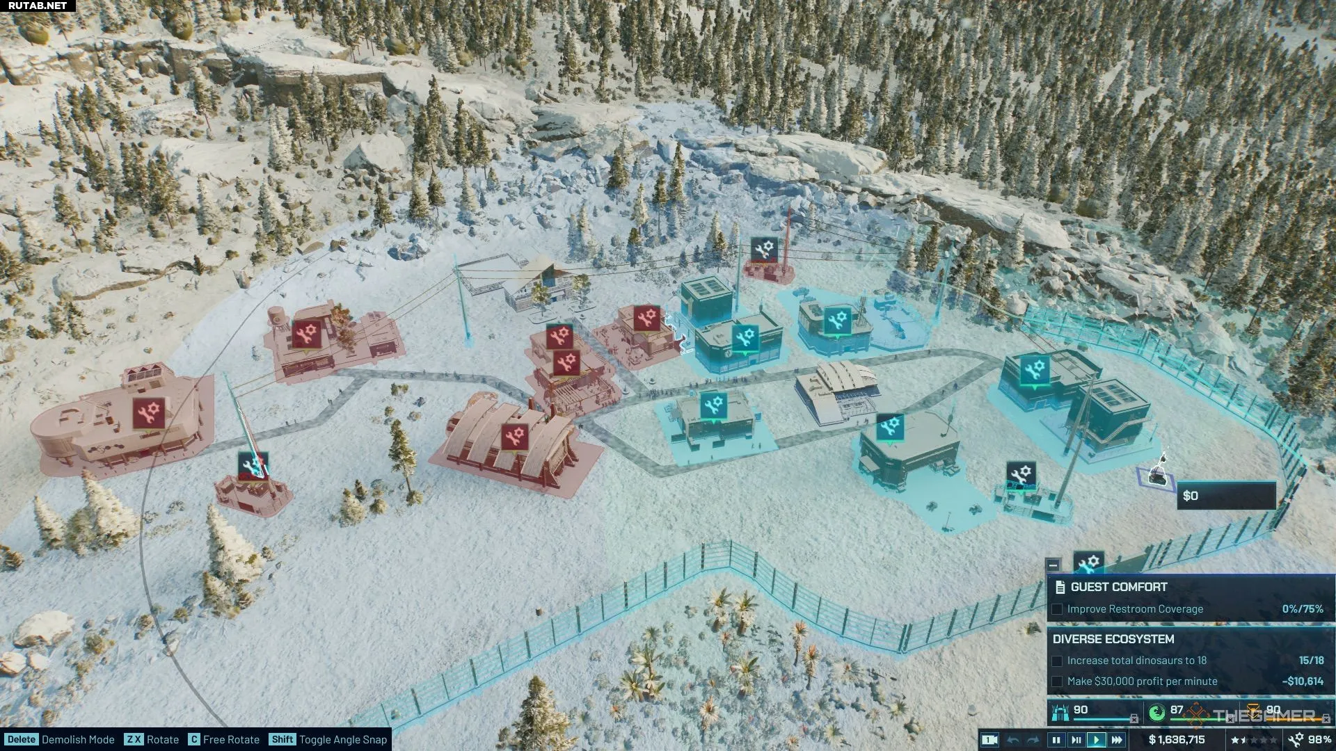 Для бесперебойной работы парка показатель технического обслуживания должен оставаться на уровне 95-100%. Это означает, что вольеры и ограждения находятся в исправном состоянии, а все здания обеспечены электроэнергией. Вот всё, что нужно знать об эффективном управлении парком в Jurassic World Evolution.