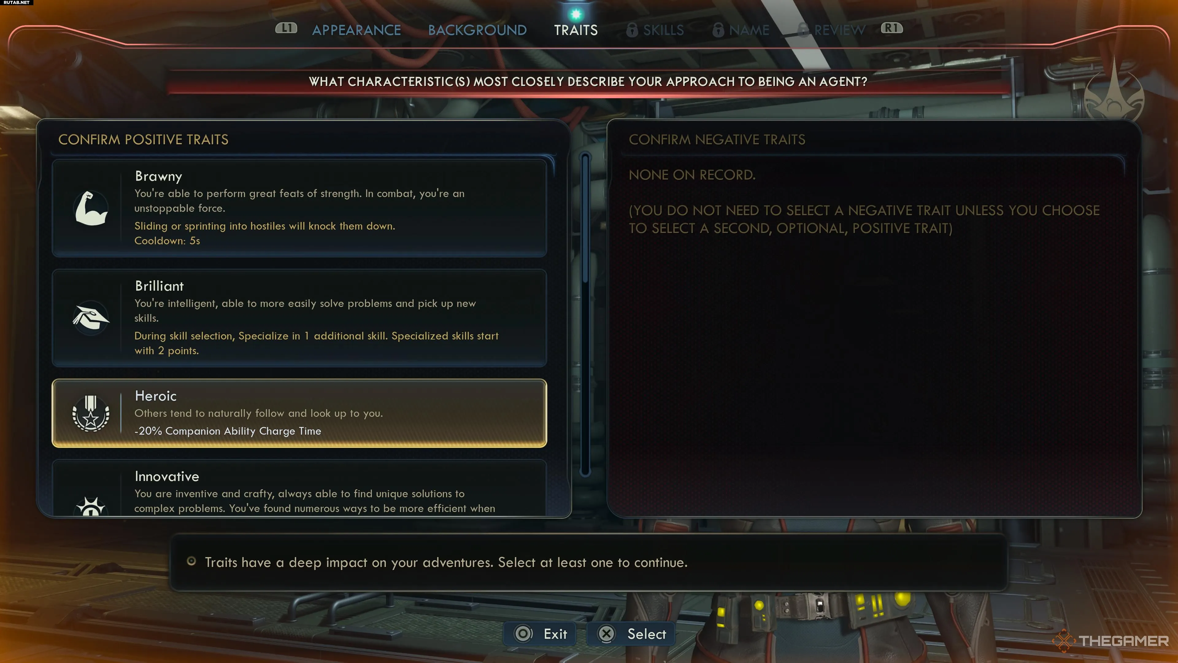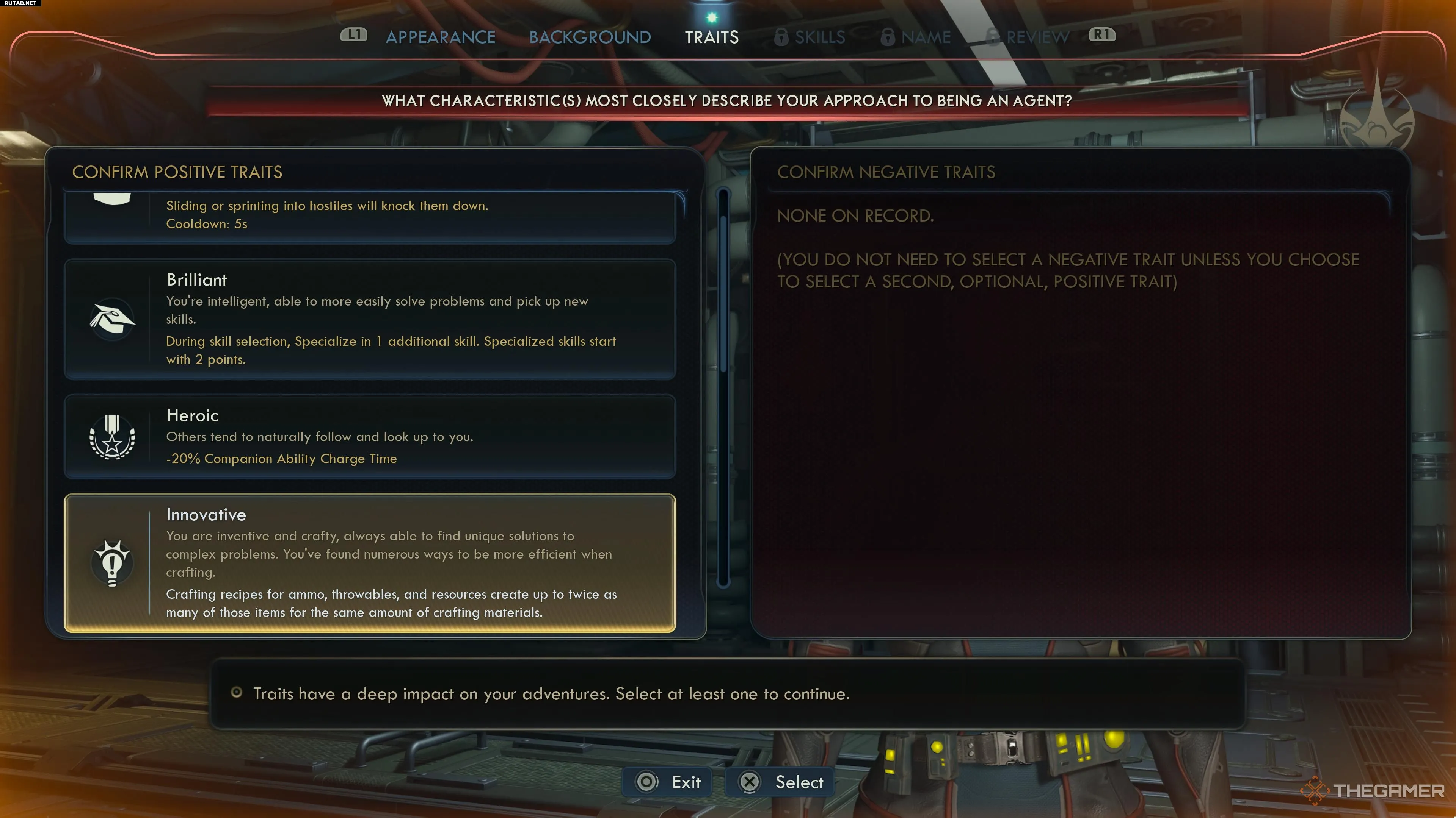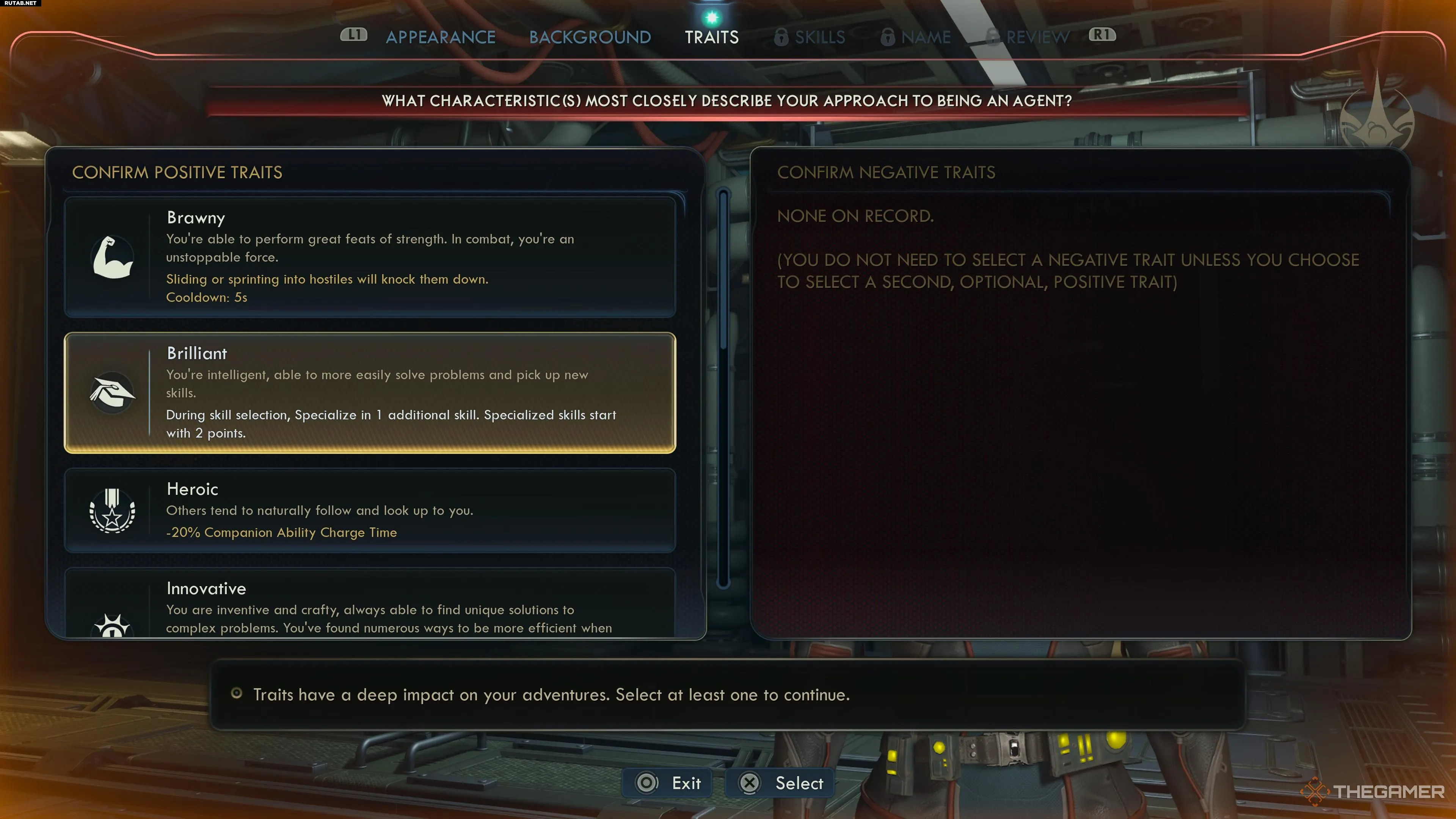 Вы не можете изменить черты после их выбора. То же самое относится к специализированным навыкам и происхождению. У вас будет одна возможность после завершения самой первой миссии перераспределить характеристики, если они вам не понравились, но это ваш единственный шанс. С этого момента выбор зафиксирован до конца игры. Удачи!