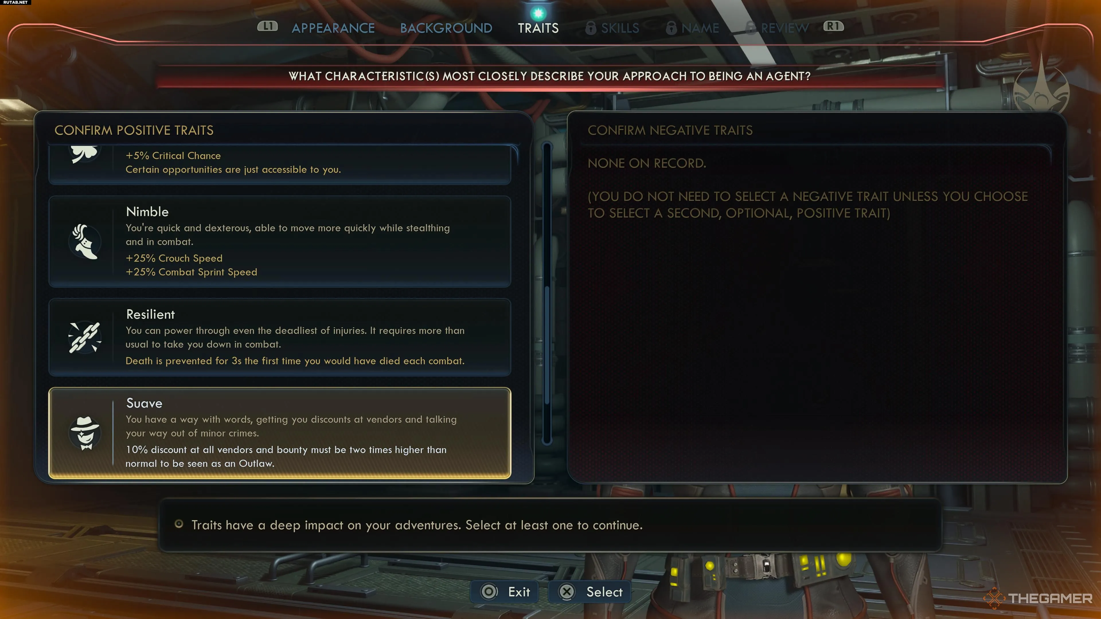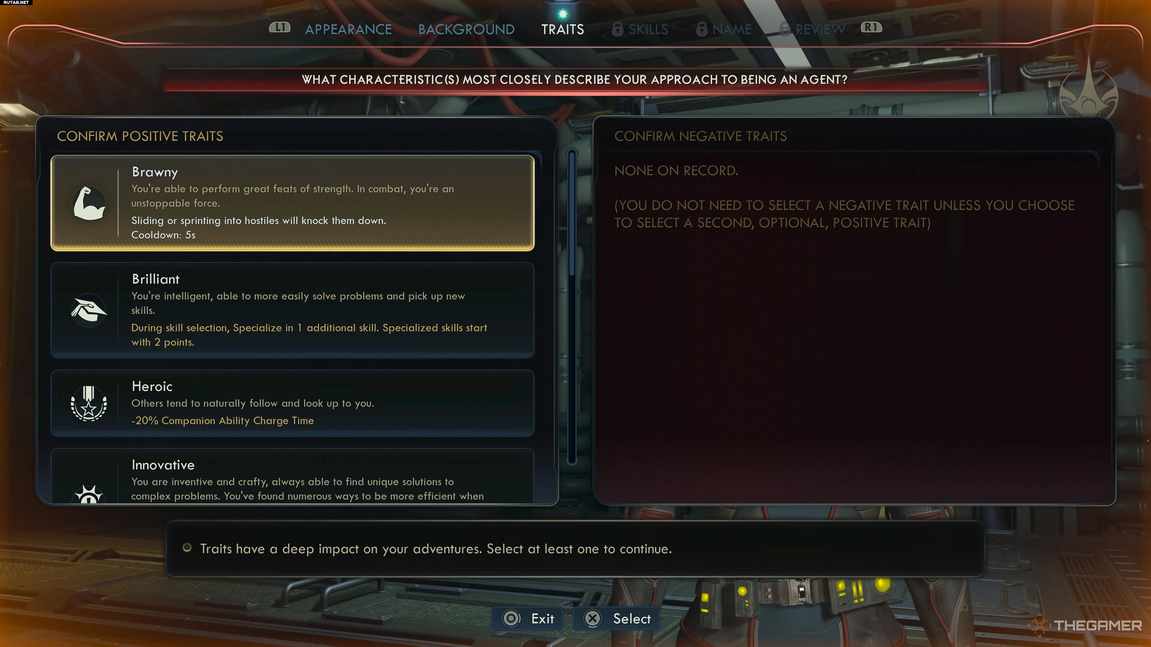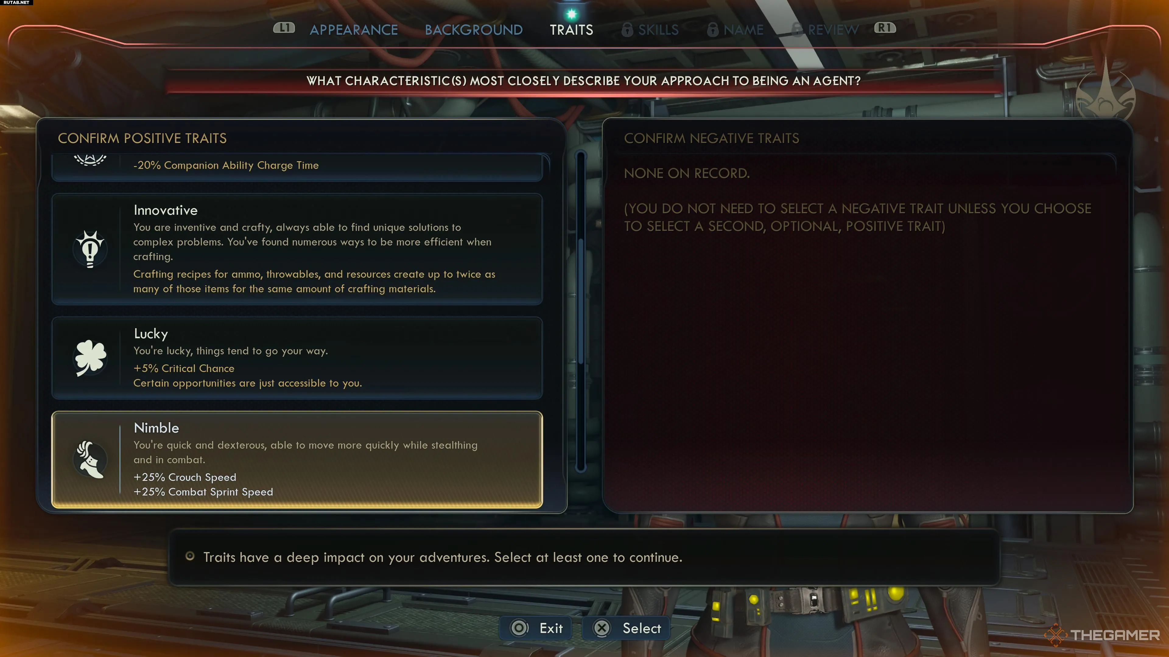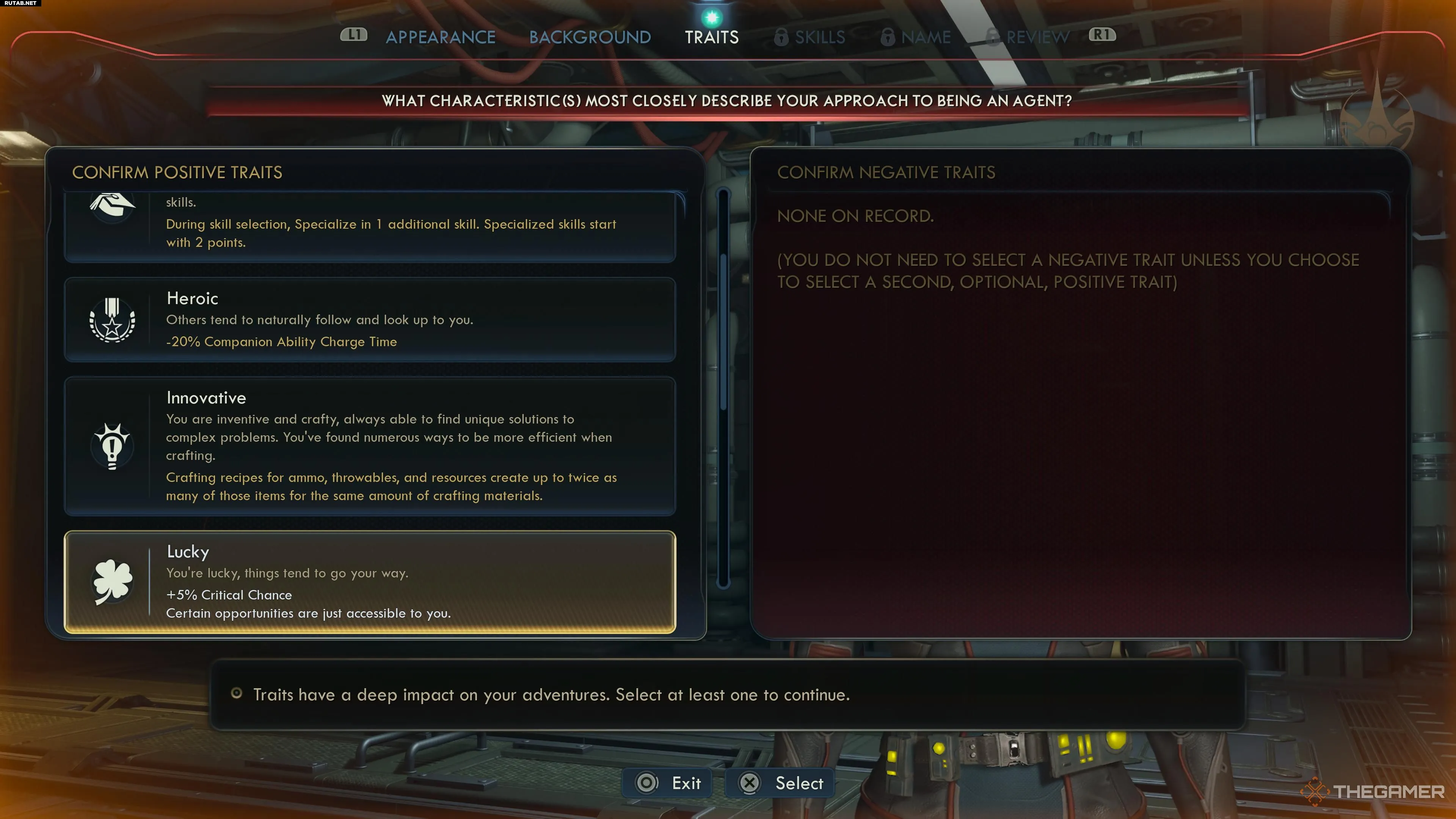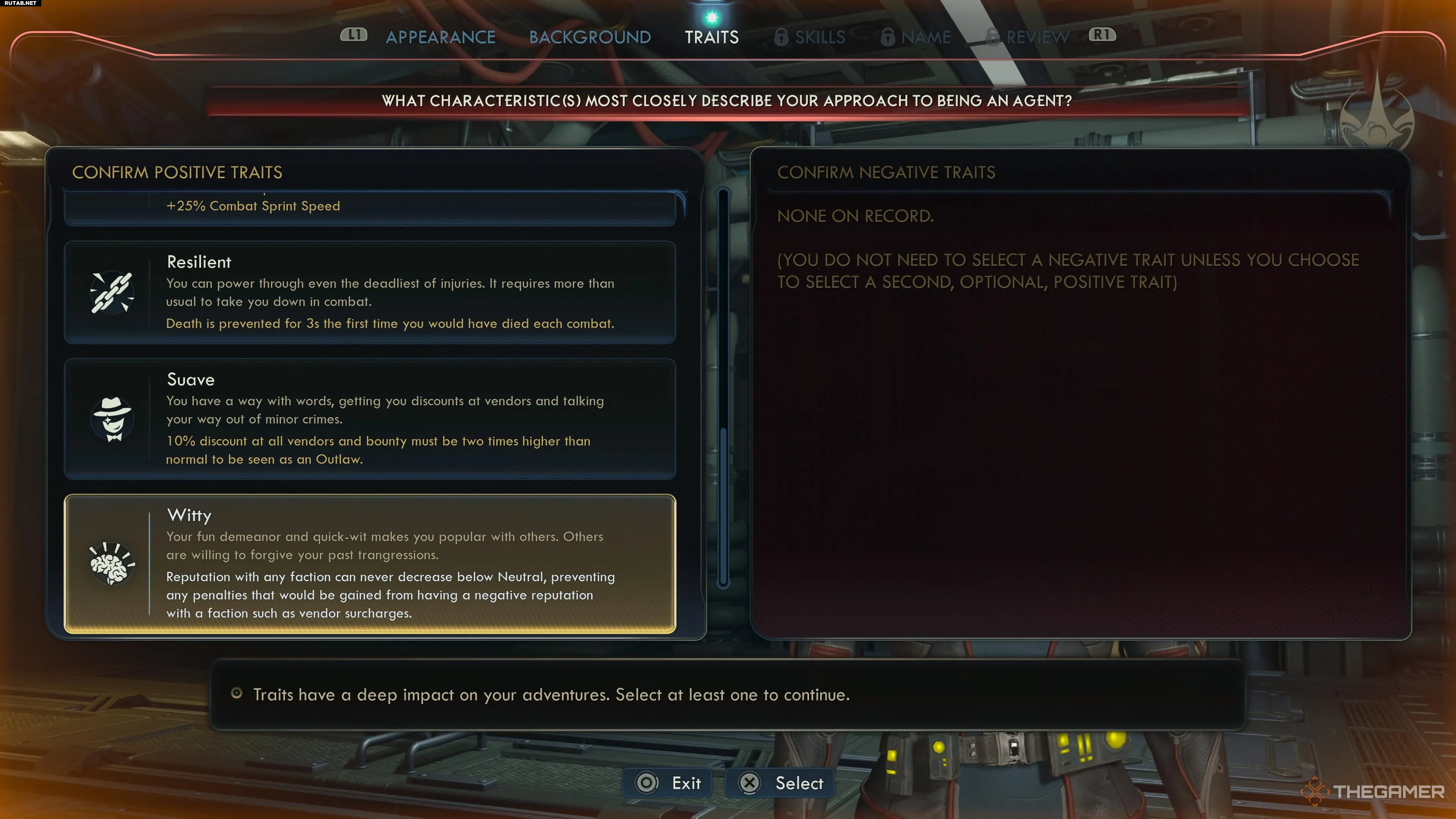 При создании персонажа вам необходимо выбрать его происхождение, навыки для специализации и, конечно же, черты. Навыки можно улучшать независимо от выбранной специализации, а происхождение в большей степени влияет на диалоги и атмосферу, чем на геймплей в целом. Черты же кардинально меняют то, как вы играете.
