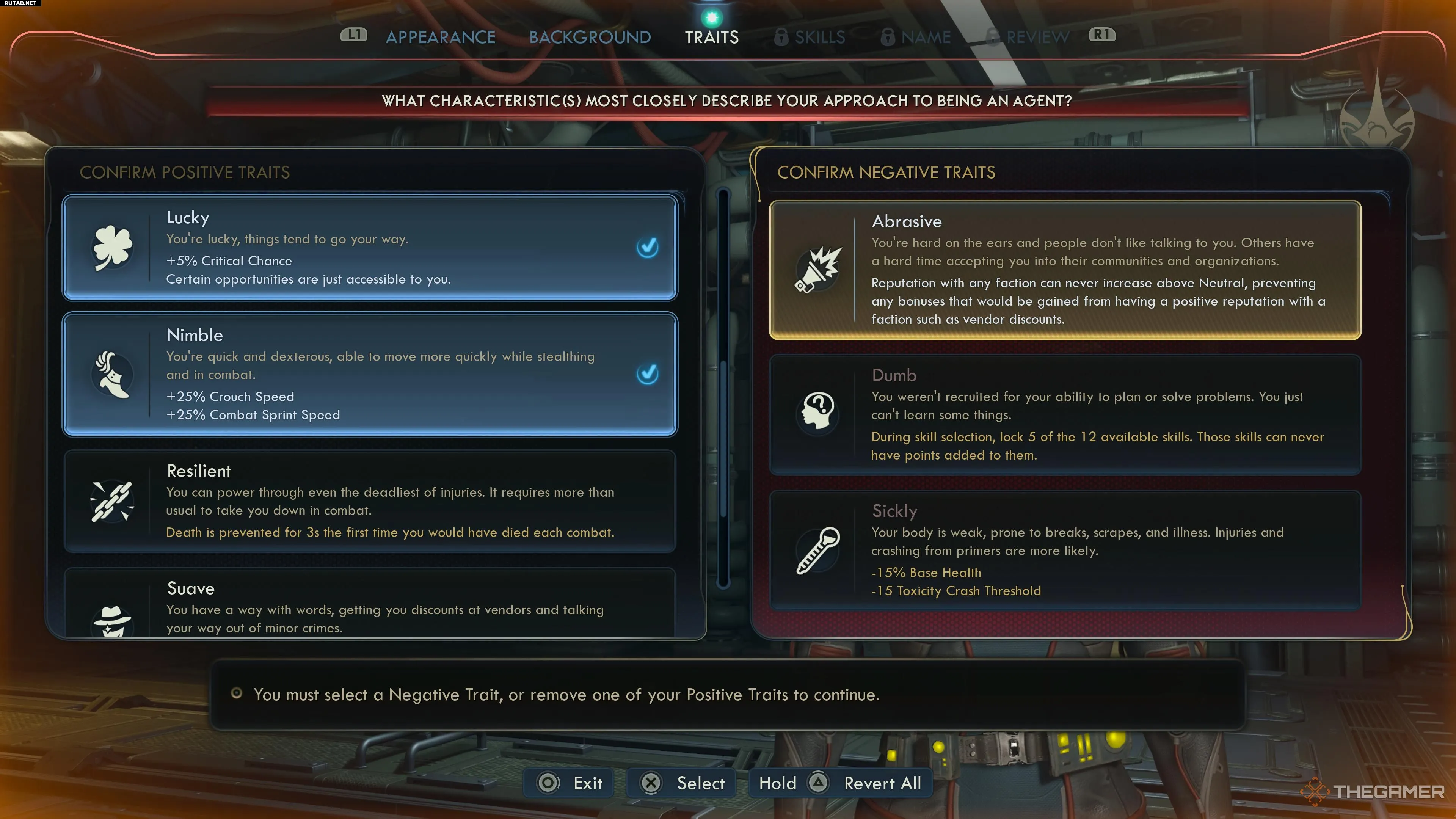 Отрицательные черты не способствуют комфортному и гладкому прохождению, но они могут добавить забавные повороты в игру. Иногда компромисс оправдан, если вы очень хотите получить вторую положительную черту. Доступно всего три отрицательные черты, независимо от выбранной комбинации положительных.