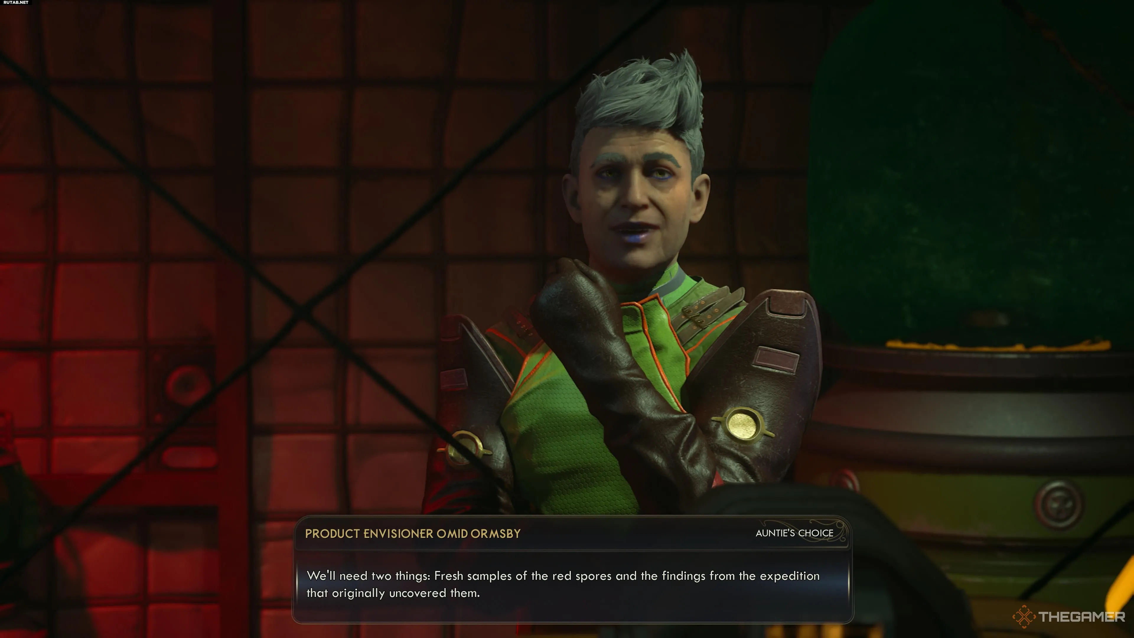 Следующий шаг, и куда более отдалённый, — это образцы красных спор. Хотя вам нужно собрать всего один, вы можете взять столько, сколько захотите, и любой из них подойдёт. К счастью, место, куда нужно отправиться, будет отмечено на вашей карте.
