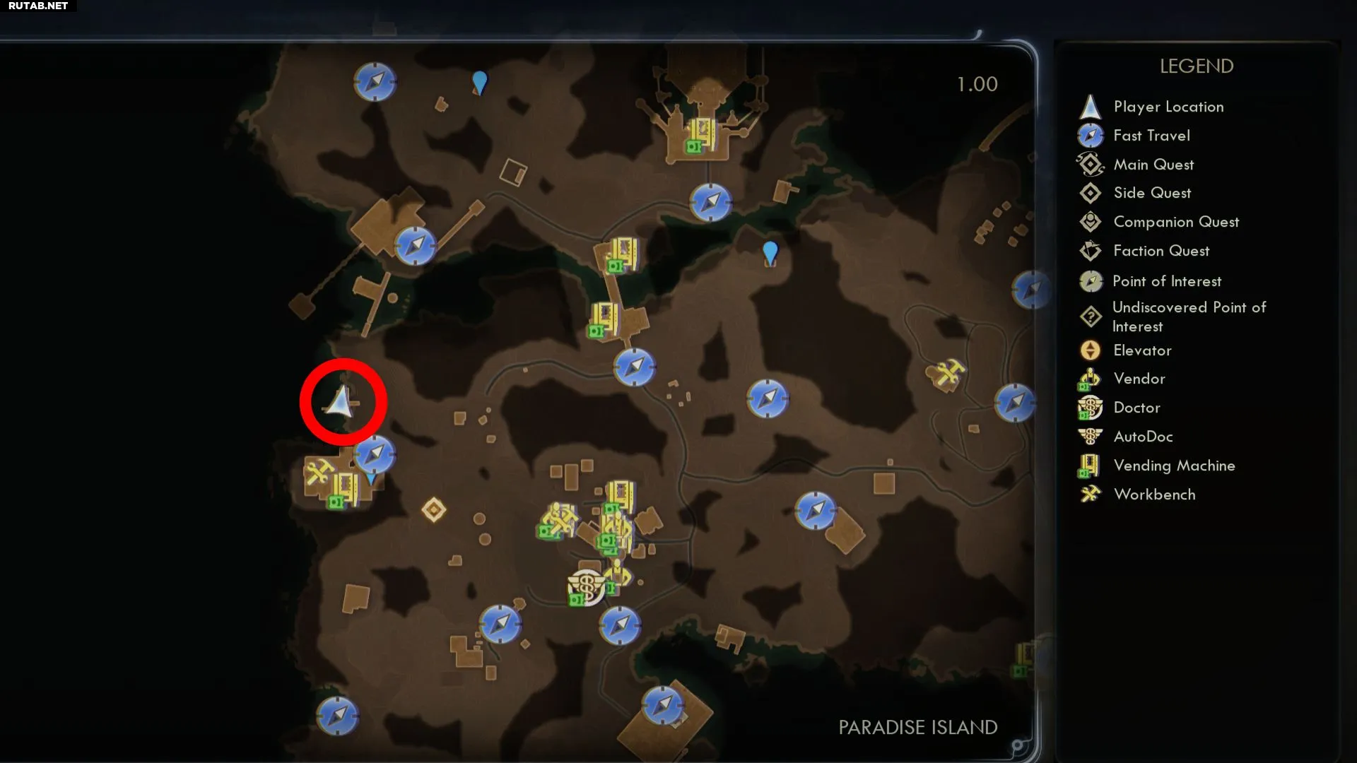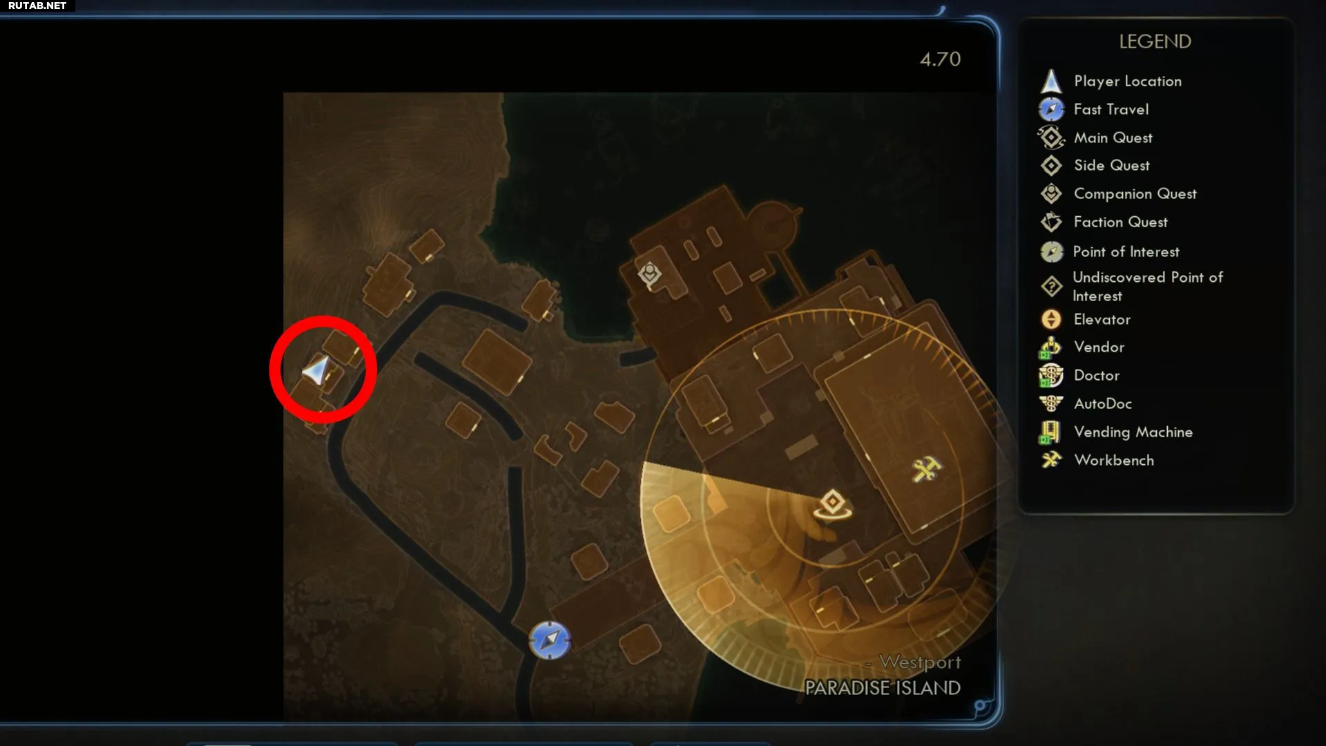 - Дополнительные замечания: Двигайтесь на северо-запад от электростанции «Скайкаттер» на дальнем западном побережье острова Парадиз. Также можно добраться сюда через быстрое перемещение к посадочной площадке десантного модуля, затем двигаясь прямо на север.