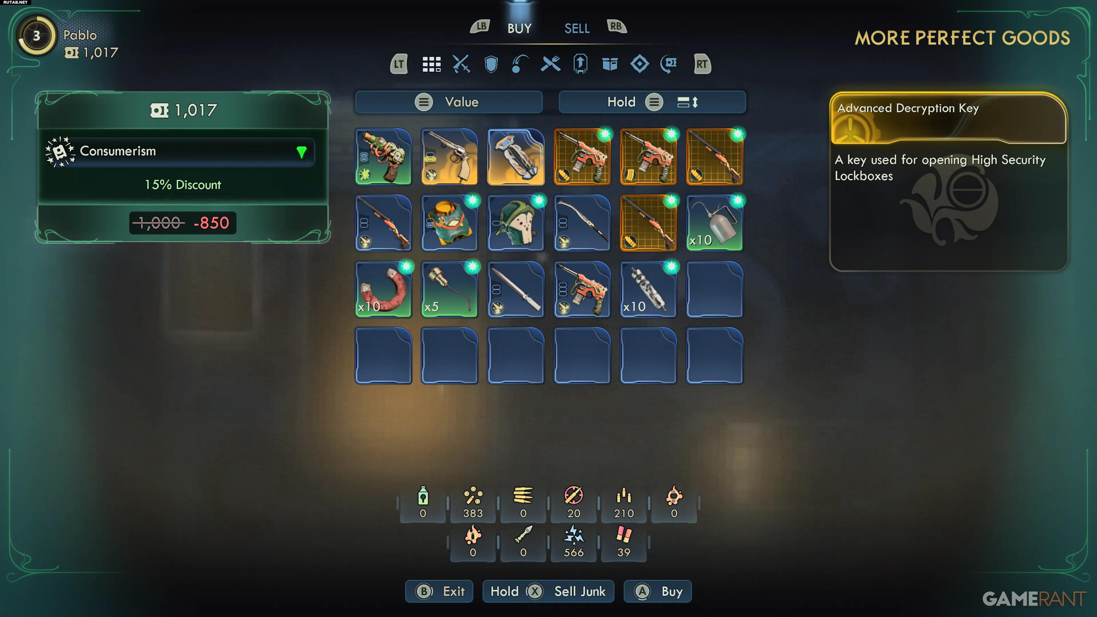 Если вы примете недостаток «Консьюмеризм», то сможете покупать продвинутые ключи дешифрования со скидкой 15%.