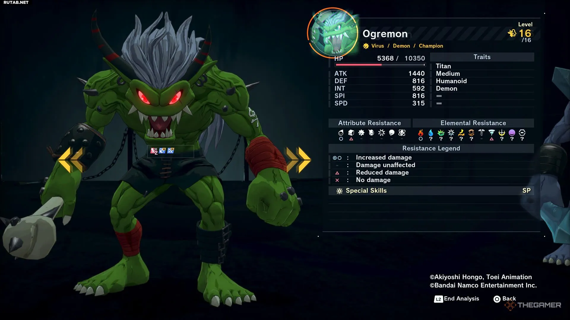 В течение боя Огременон будет использовать Удар Дубиной, нанося темный физический урон одному из ваших дигимонов и снижая их точность. Используйте навыки восстановления статуса, такие как Медитатор, чтобы убрать этот негативный эффект, если ваши атаки часто промахиваются.