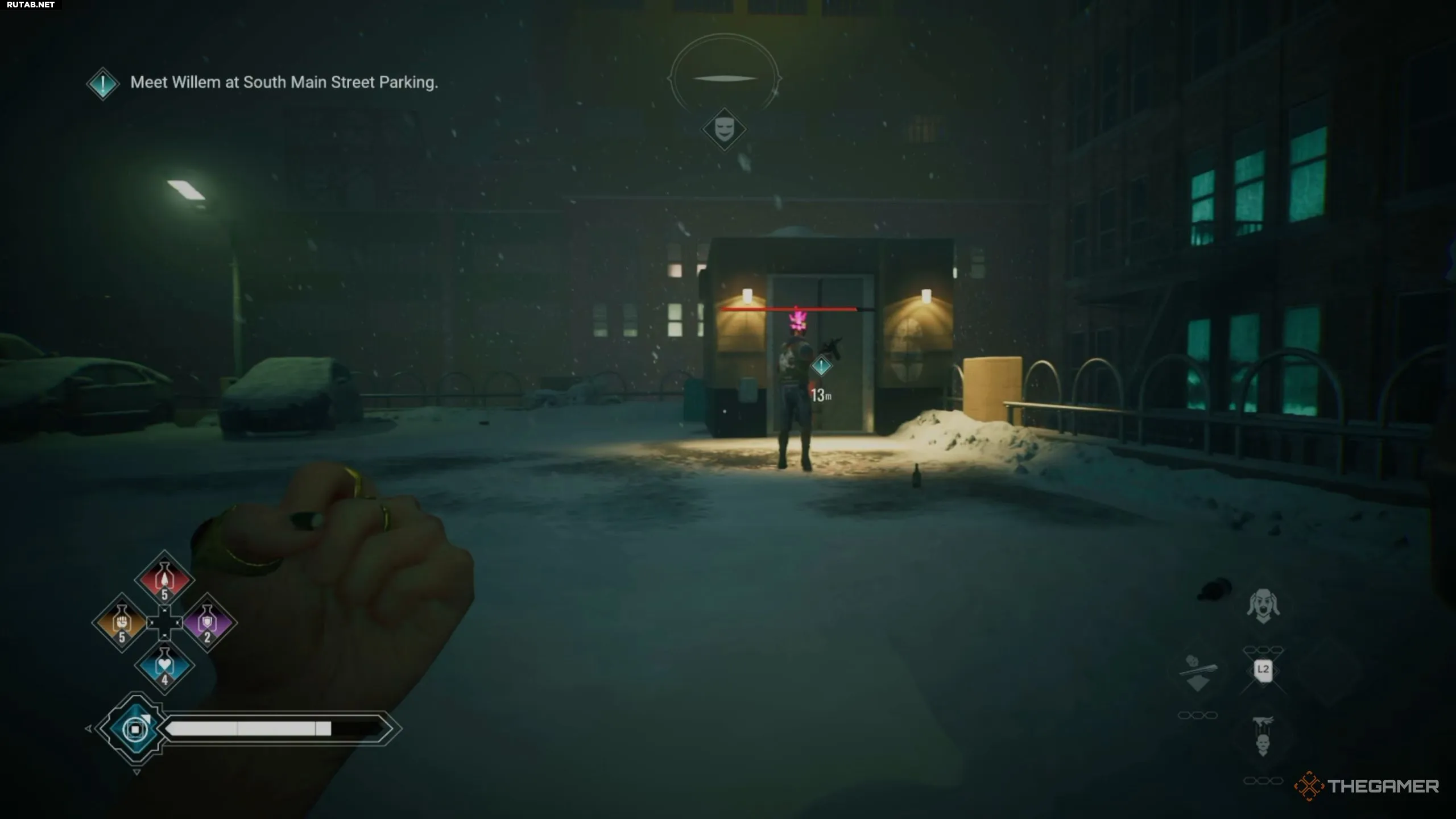 Рекомендуется передвигаться по крышам по направлению к маркеру задания, так как попасть внутрь можно только сверху.