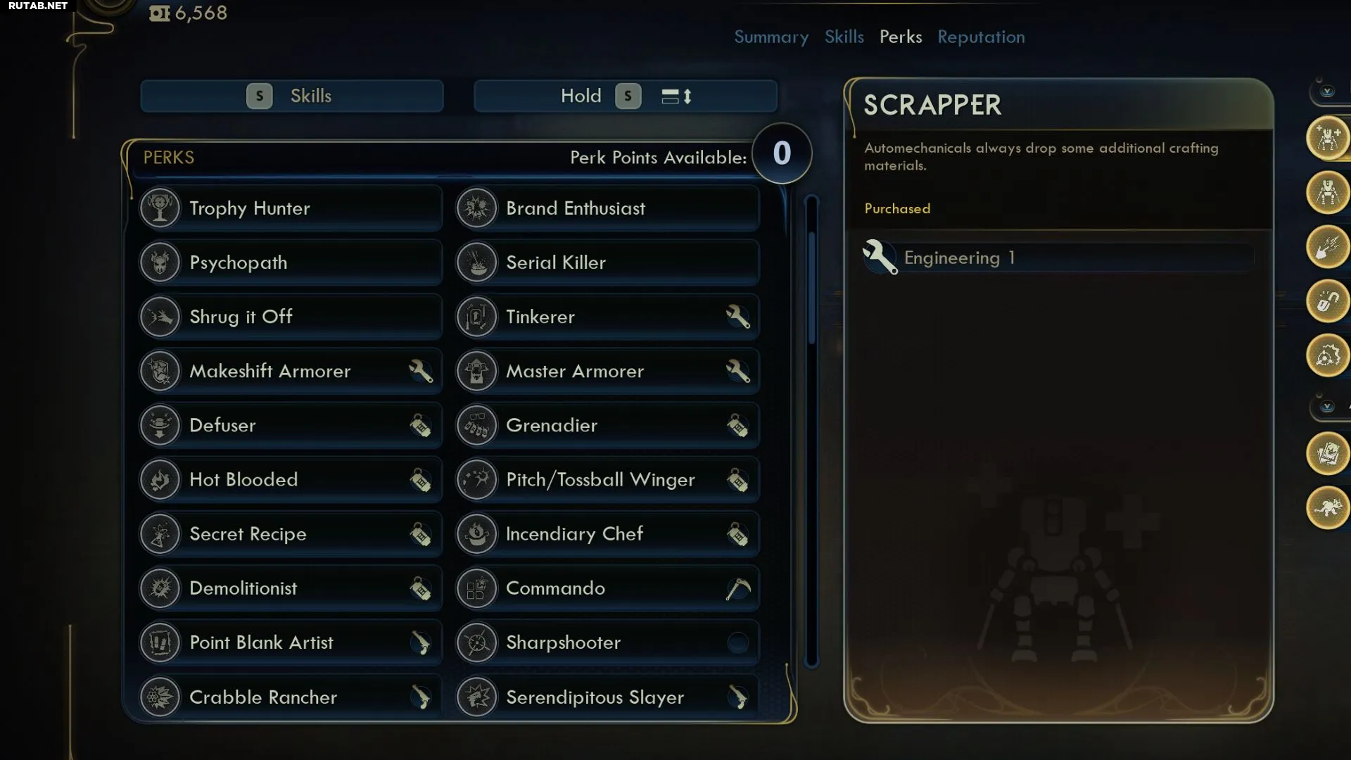 | Мастер на все руки | Снижает стоимость улучшения оружия и брони на верстаке. | -25% к стоимости улучшений | Инженерия 1 |
