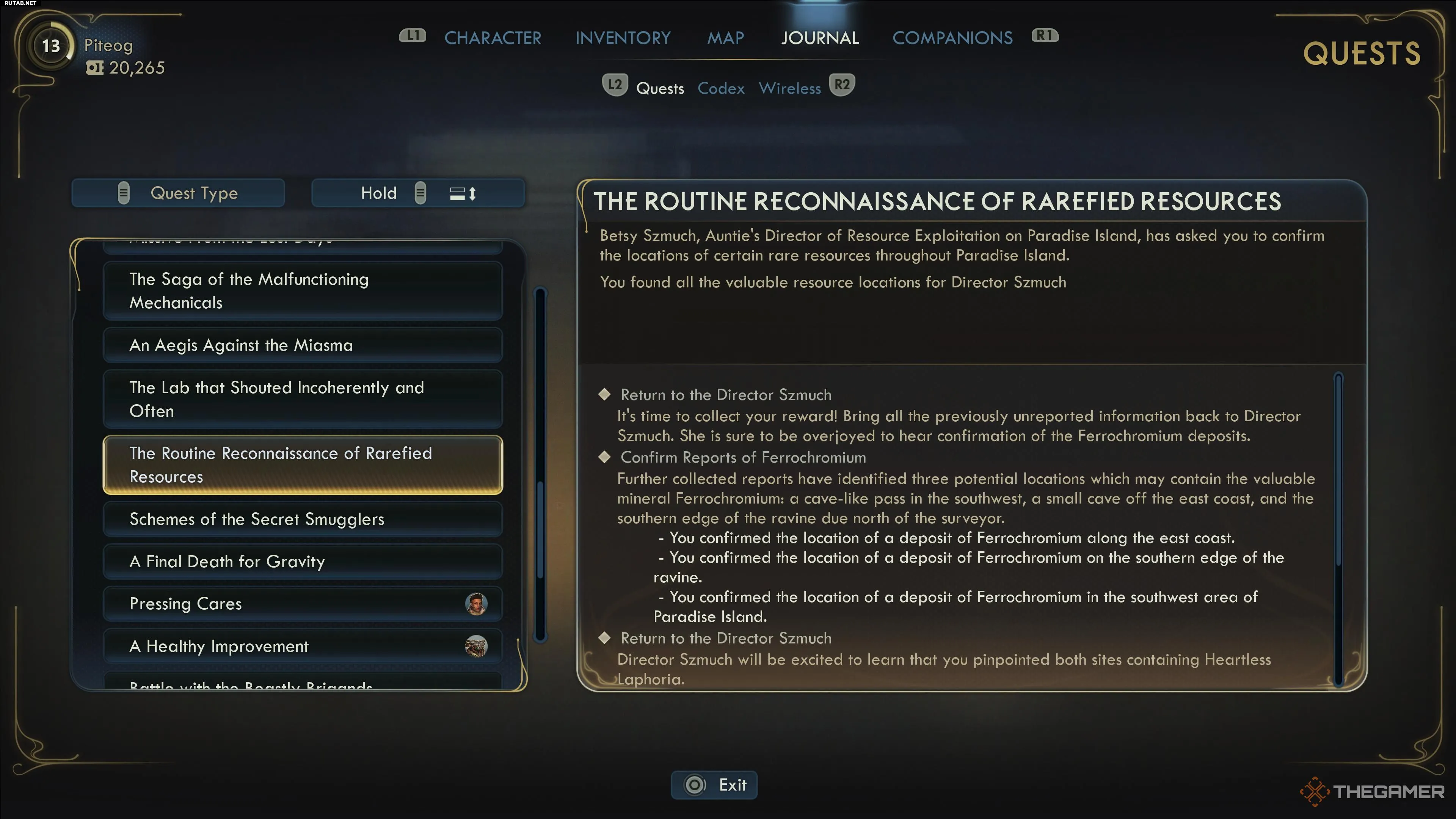 Первое задание спутника Найлса называется «Насущные заботы», и его можно получить очень рано в игре. Однако оно не выдаётся через простой разговор с NPC и не отмечено на карте. Найлс должен предложить его вам сам, а для этого он должен находиться в вашей группе во время исследования мира.